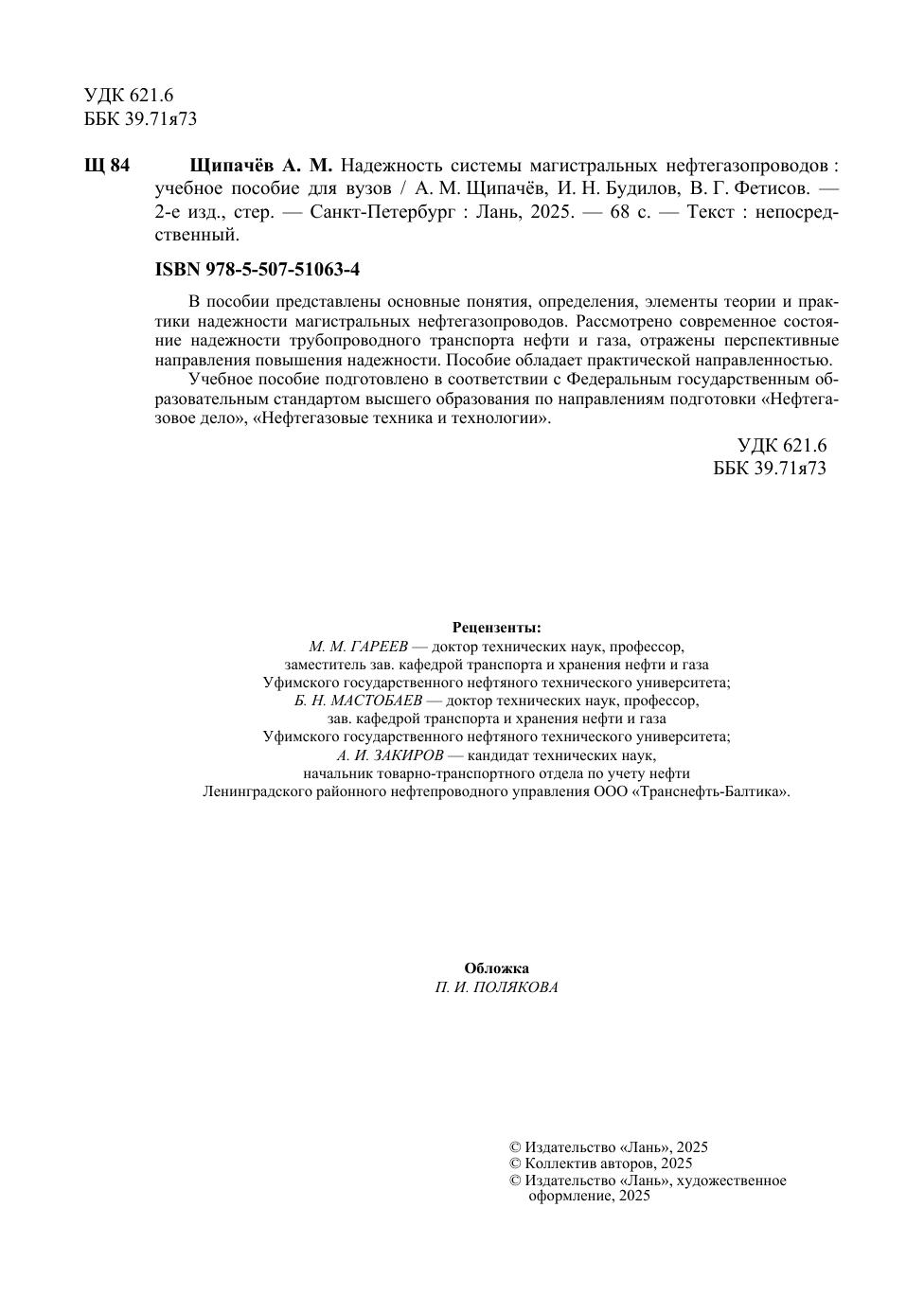 В пособии представлены основные понятия, определения, элементы теории и практики надежности магистральных нефтегазопроводов. Рассмотрено современное состояние надежности трубопроводного транспорта нефти и газа, отражены перспективные направления повышения надежности. Пособие обладает практической направленностью. Учебное пособие подготовлено в соответствии с Федеральным государственным образовательным стандартом высшего образования по направлениям подготовки «Нефтегазовое дело», «Нефтегазовые техника и технологии».