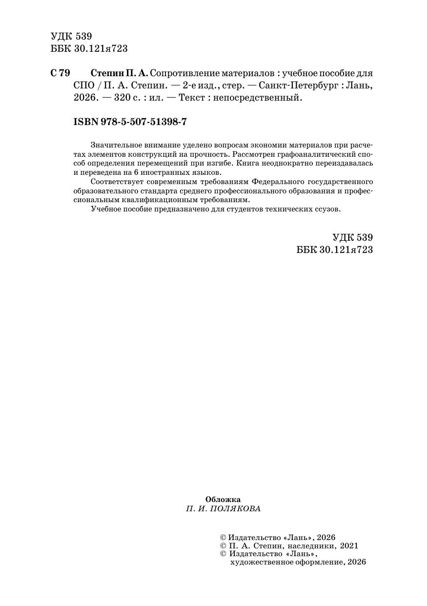 Значительное внимание уделено вопросам экономии материалов при расчетах элементов конструкций на прочность. Рассмотрен графоаналитический способ определения перемещений при изгибе. Книга неоднократно переиздавалась и переведена на 6 иностранных языков. Соответствует современным требованиям Федерального государственного образовательного стандарта среднего профессионального образования и профессиональным квалификационным требованиям. Учебное пособие предназначено для студентов технических ссузов.