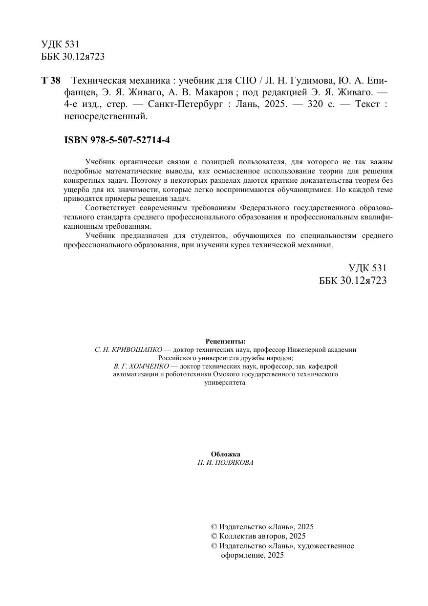 Учебник органически связан с позицией пользователя, для которого не так важны подробные математические выводы, как осмысленное использование теории для решения конкретных задач. Поэтому в некоторых разделах даются краткие доказательства теорем без ущерба для их значимости, которые легко воспринимаются обучающимися. По каждой теме приводятся примеры решения задач. Соответствует современным требованиям Федерального государственного образовательного стандарта среднего профессионального образования и профессиональным квалификационным требованиям. Учебник предназначен для студентов, обучающихся по специальностям среднего профессионального образования, при изучении курса технической механики.