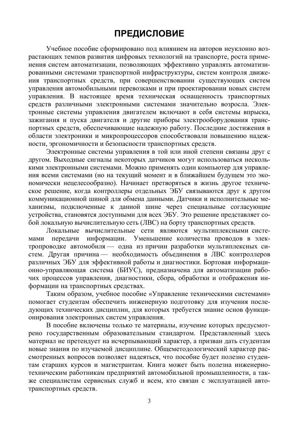 Книга представляет собой учебное издание, в котором с системотехнических позиций представлены конструктивные решения основных технических систем управления транспортных средств, закономерности функционирования и особенности их работы. Целью пособия является обобщение, систематизация вопросов конструкции, диагностирования и обслуживания современных электронных и микропроцессорных систем управления автомобиля, дать определения основным понятиям, описание некоторым электронным системам автомобиля. Рассмотрены основные компоненты автоматических устройств автомобильного транспорта и условия их функционирования. Изложены особенности построения алгоритмов, оптимального управления транспортными средствами, а также отдельные аспекты теории передачи информации систем управления. В рассматриваемой предметной области анализируются конкретные примеры, направленные на выработку навыков применения математических методов при управлении техническими системами. Учебное пособие написано в соответствии с ФГОС ВО третьего поколения и предназначено для бакалавров и магистров направлений подготовки «Технология транспортных процессов», «Наземные транспортно-технологические средства», «Эксплуатация транспортно-технологических машин и комплексов». Книга может быть полезна инженерно-техническим работникам предприятий автомобильной промышленности, а также специалистам сервисных служб и всем, кто связан с эксплуатацией автотранспортных средств.