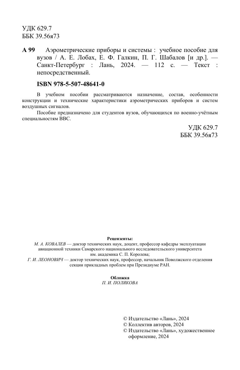 В учебном пособии рассматриваются назначение, состав, особенности конструкции и технические характеристики аэрометрических приборов и систем воздушных сигналов. Пособие предназначено для студентов вузов, обучающихся по военно-учётным специальностям ВВС.