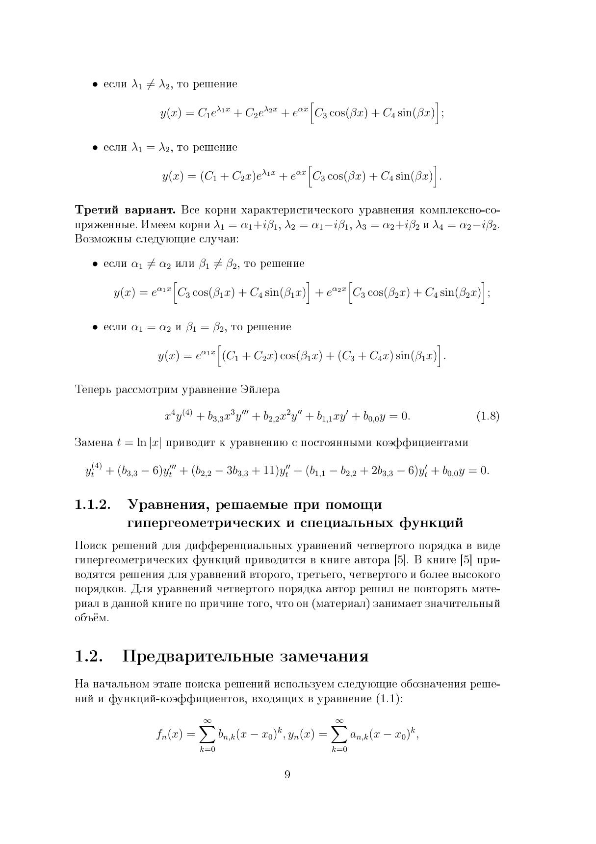 В учебном пособии рассмотрены многочисленные варианты регулярных особых точек и приведены методики решения дифференциальных уравнений четвертого порядка при помощи рекуррентных алгоритмов. В книге подобраны многочисленные варианты уравнений, имеющих решения в виде «точной формулы». Количество вариантов решаемых уравнений в виде «точной формулы» превосходит их количество во всех известных автору справочниках. Учебное пособие содержит большое количество задач и алгоритмов для практического закрепления материала, будет полезно при изучении и решении дифференциальных уравнений четвертого порядка с переменными коэффициентами студентам высших учебных заведений.