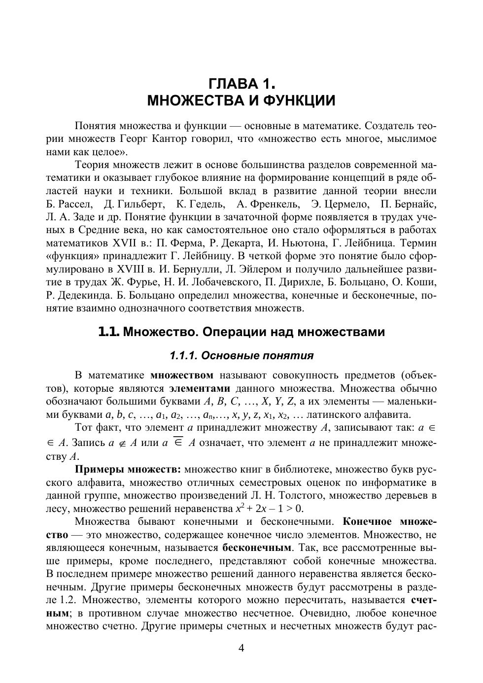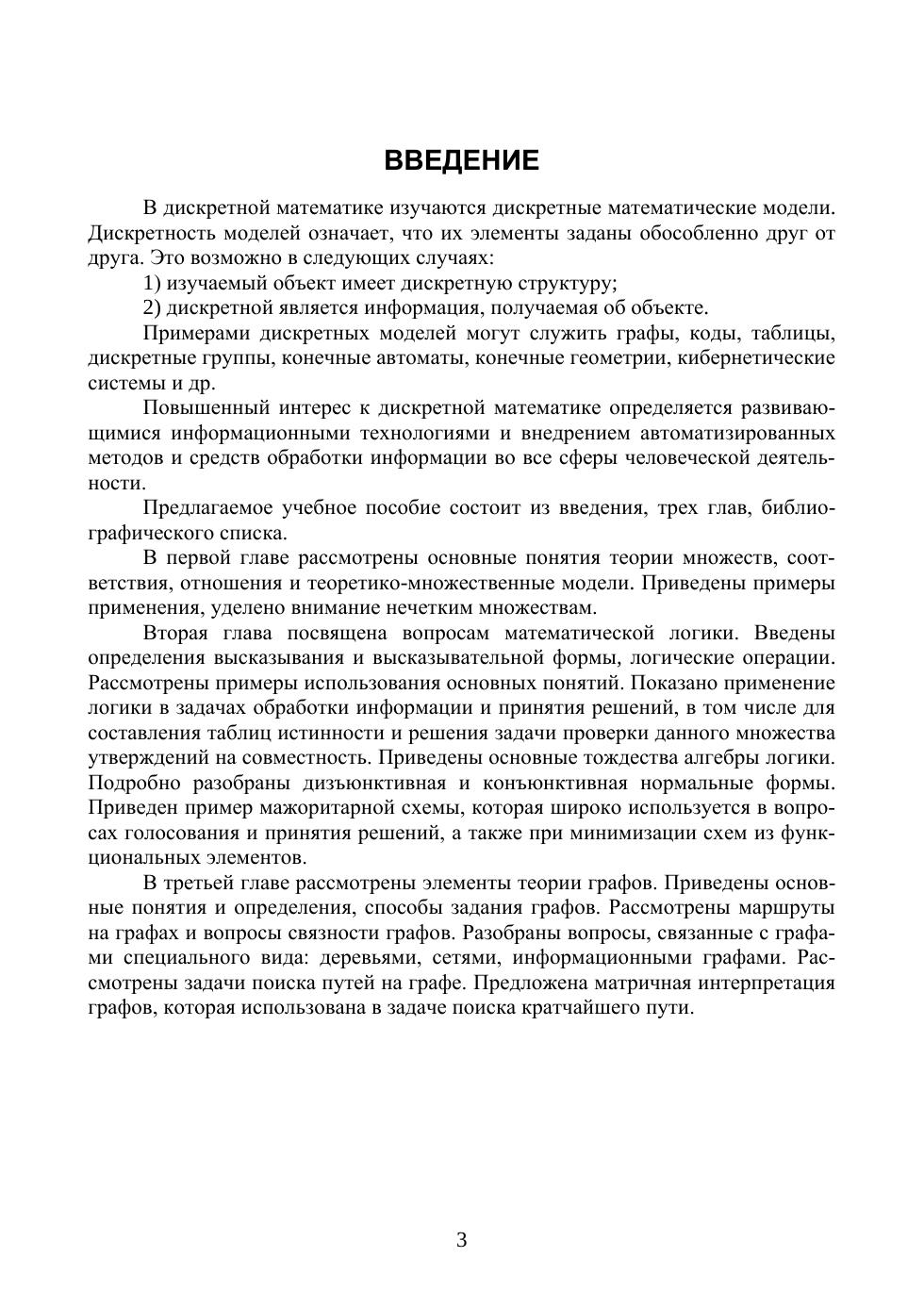 Рассмотрены вопросы теории множеств, отношений, комбинаторики, математической логики и теории графов, которые образуют курс дискретной математики. Теоретические положения проиллюстрированы примерами, в том числе прикладного характера. Соответствует современным требованиям Федерального государственного образовательного стандарта среднего профессионального образования и профессиональным квалификационным требованиям. Предназначено для изучения дисциплины «Дискретная математика» по укрупненным группам специальностей среднего профессионального образования «Информатика и вычислительная техника». Может быть использовано в дополнительном профессиональном образовании (в программах повышения квалификации и переподготовки), а также для профессиональной подготовки работников в различных областях при наличии среднего (полного) общего образования.