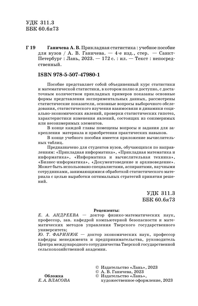 Пособие представляет собой объединенный курс статистики и математической статистики, в котором полно и доступно, с достаточным количеством прикладных примеров показаны основные формы представления экспериментальных данных, рассмотрены статистические показатели, основные вопросы выборочного обследования, статистического изучения взаимосвязи и динамики социально-экономических явлений, проверки статистических гипотез, характеристики изменения явлений, состоящих из соизмеримых или несоизмеримых элементов.В конце каждой главы помещены вопросы и задания для закрепления материала и приобретения практических навыков.В конце учебного пособия имеется приложение вычислительных таблиц.Предназначено для студентов, обучающихся по направлениям: «Прикладная информатика», «Прикладная математика и информатика», «Информатика и вычислительная техника», «Бизнес-информатика», «Документоведение и архивоведение». Может быть использовано специалистами, аспирантами, научными сотрудниками, занимающимися обработкой статистического материала с целью выработки оптимальных стратегий принятия решений.
