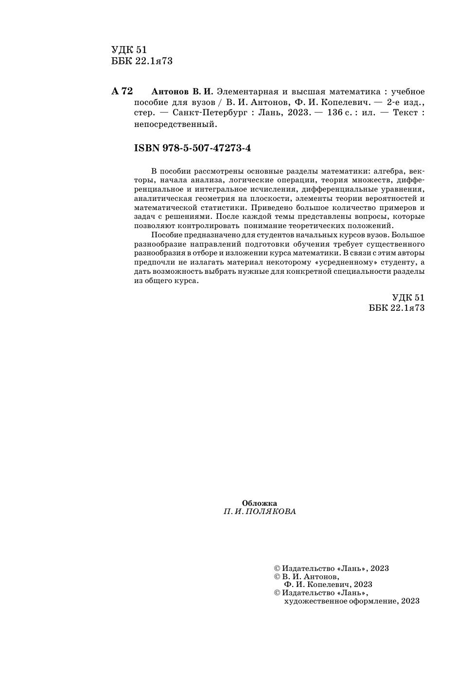 Элементарная и высшая математика