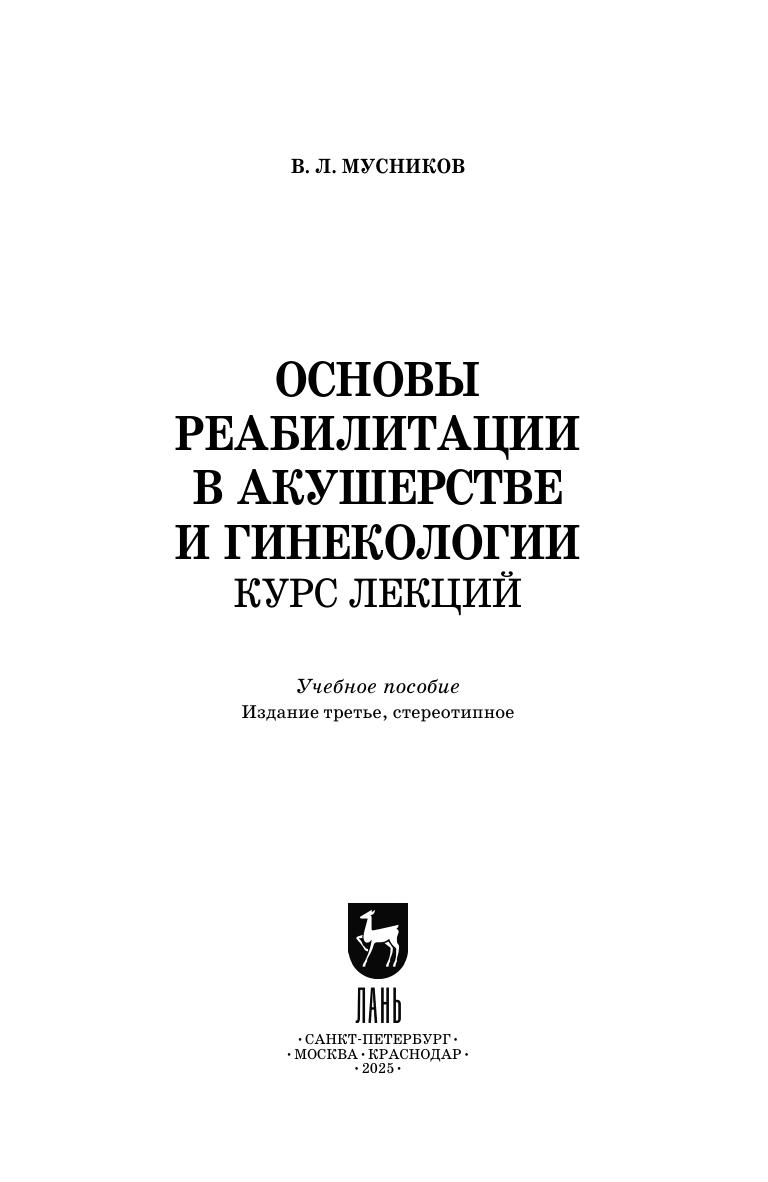 Основы реабилитации в акушерстве и гинекологии. Курс лекций