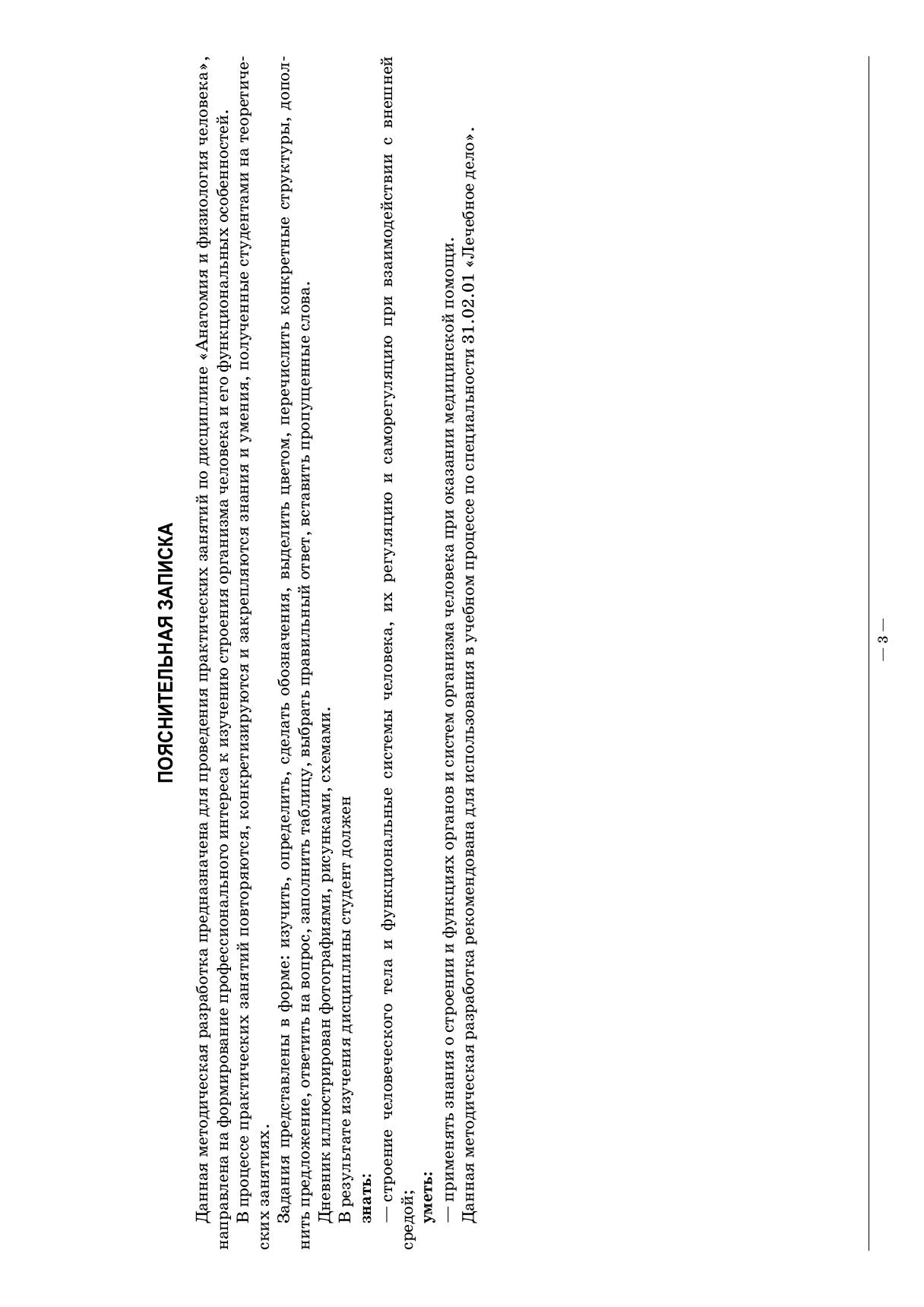 Данная методическая разработка предназначена для проведения практических занятий по дисциплине «Анатомия и физиология человека», направлена на формирование профессионального интереса к изучению строения организма человека и его функциональных особенностей. Задания представлены в форме: изучить, определить, сделать обозначения, выделить цветом, перечислить конкретные структуры, дополнить предложение, ответить на вопрос, заполнить таблицу, выбрать правильный ответ, вставить пропущенные слова. Дневник иллюстрирован фотографиями, рисунками, схемами. Пособие рекомендовано для использования в учебном процессе по специальности «Лечебное дело». Соответствует современным требованиям Федерального государственного образовательного стандарта среднего профессионального образования и профессиональным квалификационным требованиям.
