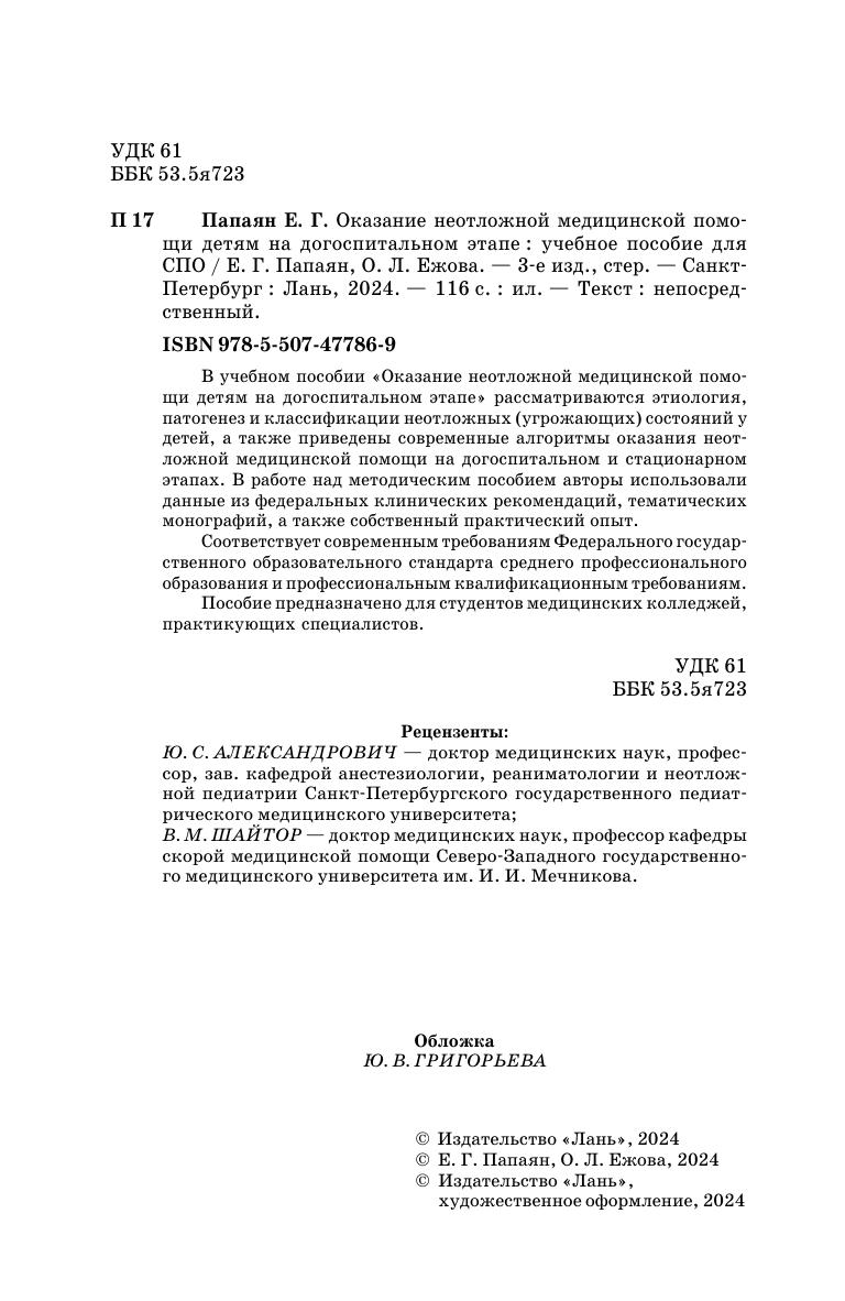 В учебном пособии «Оказание неотложной медицинской помощи детям на догоспитальном этапе» рассматриваются этиология, патогенез и классификации неотложных (угрожающих) состояний у детей, а также приведены современные алгоритмы оказания неотложной медицинской помощи на догоспитальном и стационарном этапах. В работе над методическим пособием авторы использовали данные из Федеральных клинических рекомендаций, тематических монографий, а также собственный практический опыт. Соответствует современным требованиям Федерального государственного образовательного стандарта среднего профессионального образования и профессиональным квалификационным требованиям. Пособие предназначено для студентов медицинских колледжей, практикующих специалистов.