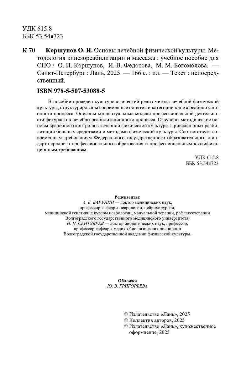 В пособии проведен культурологический релиз метода лечебной физической культуры, структурированы современные понятия и категории кинезореабилитационного процесса. Описаны концептуальные модели профессиональной деятельности фигурантов лечебно-реабилитационного процесса. Озвучены методические основы врачебного контроля в лечебной физической культуре. Приведен опыт реабилитации больных средствами и методами физической культуры. Соответствует современным требованиям Федерального государственного образовательного стандарта среднего профессионального образования и профессиональным квалификационным требованиям.