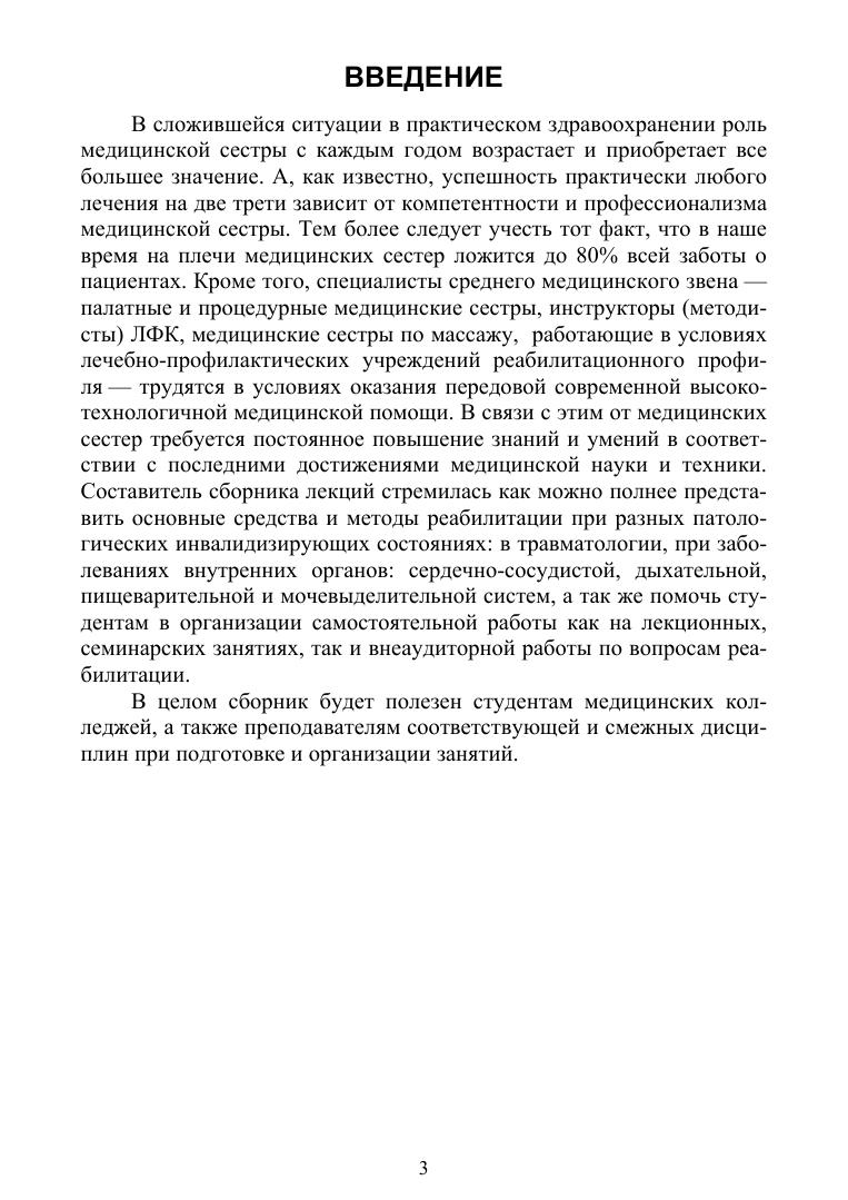 В пособии представлены основные средства и методы реабилитации при разных патологических инвалидизирующих состояниях: в травматологии и ортопедии, при заболеваниях внутренних органов и нервной системы, сердечно-сосудистой и дыхательной систем, при заболеваниях и травмах детей и лиц пожилого возраста. Кроме того, в приложения включены нормативные документы, регулирующие систему реабилитации в структуре отечественного здравоохранения. Соответствует современным требованиям Федерального государственного образовательного стандарта среднего профессионального образования и профессиональным квалификационным требованиям. Сборник лекций по реабилитации предназначен для подготовки студентов медицинского колледжа к занятиям по ПМ.02 МДК 02.02 «Участие в лечебно-диагностическом и реабилитационном процессах» для направления «Сестринское дело», ПМ.05 МДК.05.01 «Медико-социальная деятельность» для направления «Лечебное дело».