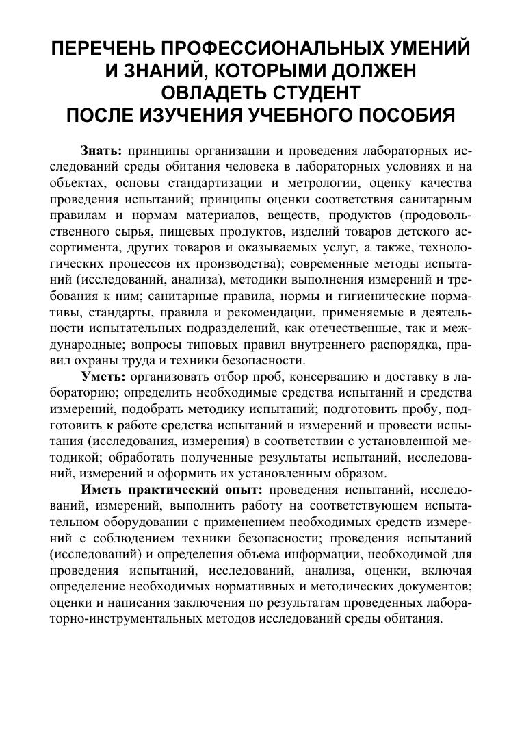 В пособии изложены теоретические и методические материалы по санитарно-гигиеническим исследованиям. Рассмотрены методы отбора и подготовки проб объектов окружающей среды для санитарно-гигиенических лабораторных исследований. Приводятся ситуационные задачи, примеры расчета различных показателей, тестовые задания, помогающие студентам овладеть практическими навыками, необходимыми при гигиенической оценке факторов окружающей среды и условий труда в санитарно-гигиенических лабораториях отдела лабораторного дела (испытательных центрах) Роспотребнадзора. Рассмотрены теоретические и практические аспекты обеспечения санитарного надзора в системе «человек-среда обитания в условиях населенных мест». Учебное пособие предназначено для самостоятельной работы студентов по дисциплине ПМ.01 «Санитарно-гигиенические наблюдения, обследования и исследования среды обитания и условий проживания населения (под руководством врача по общей и коммунальной гигиене)». Пособие разработано в соответствии с требованиями ФГОС СПО по специальности «Медико-профилактическое дело» (утвержден приказом Министерства образования и науки Российской Федерации от 12 мая 2014 г. № 500).