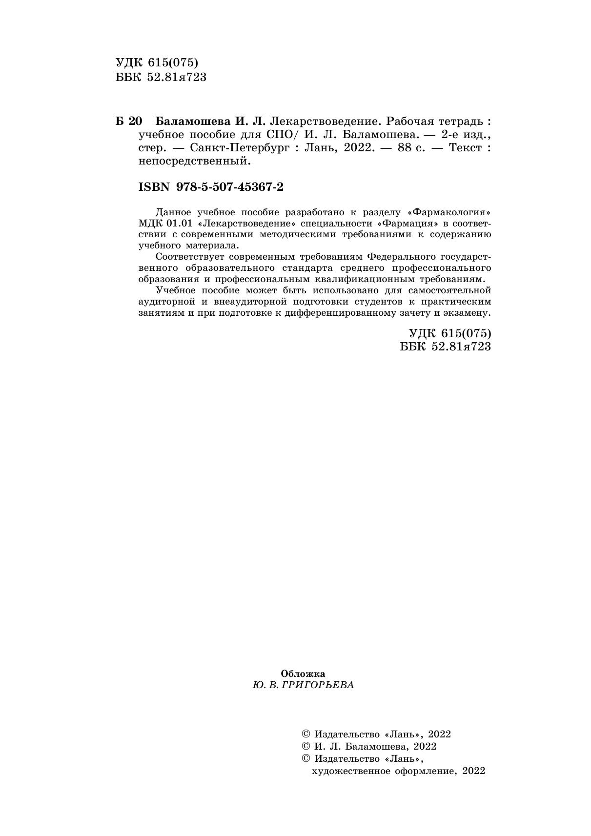 Данное учебное пособие разработано к разделу фармакология МДК 01.01 «Лекарствоведение» специальности «Фармация» в соответствии с современными методическими требованиями к содержанию учебного материала. Учебное пособие может быть использовано для самостоятельной аудиторной и внеаудиторной подготовки студентов к практическим занятиям и при подготовке к дифференцированному зачету и экзамену. Соответствует современным требованиям Федерального государственного образовательного стандарта среднего профессионального образования и профессиональным квалификационным требованиям.
