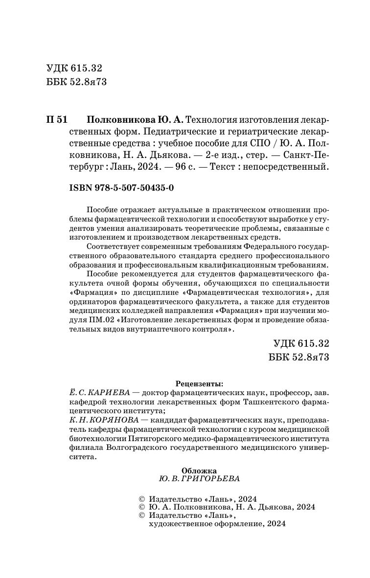 Технология изготовления лекарственных форм. Педиатрические и гериатрические лекарственные средства