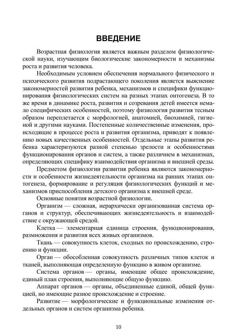В пособии рассмотрены закономерности индивидуального формирования всех функциональных систем организма детей и подростков, а также морфофизиологические особенности организма ребенка в динамике возрастного развития. В пособии в доступной и систематизированной форме изложены необходимые базовые сведения о структуре и механизмах деятельности физиологических систем детского организма и его возрастных особенностях.