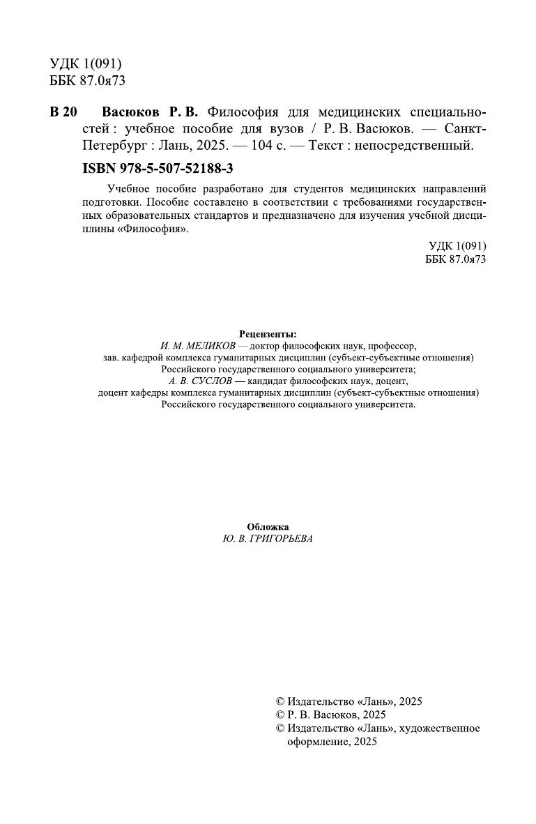 Философия для медицинских специальностей