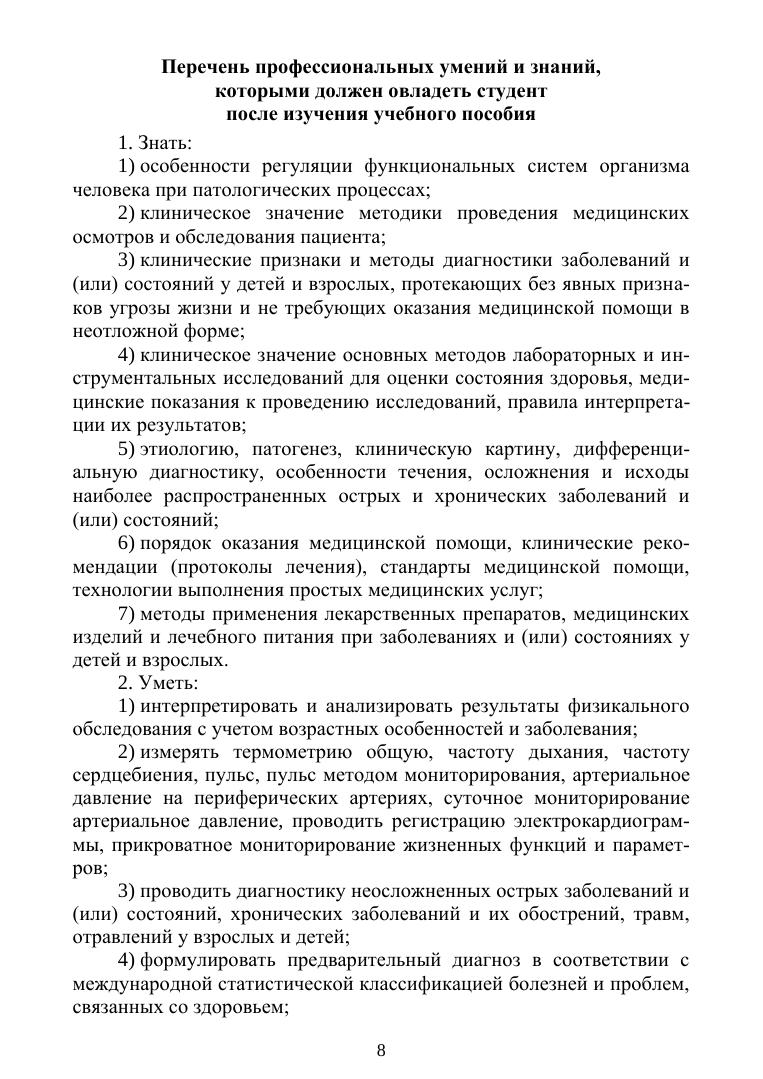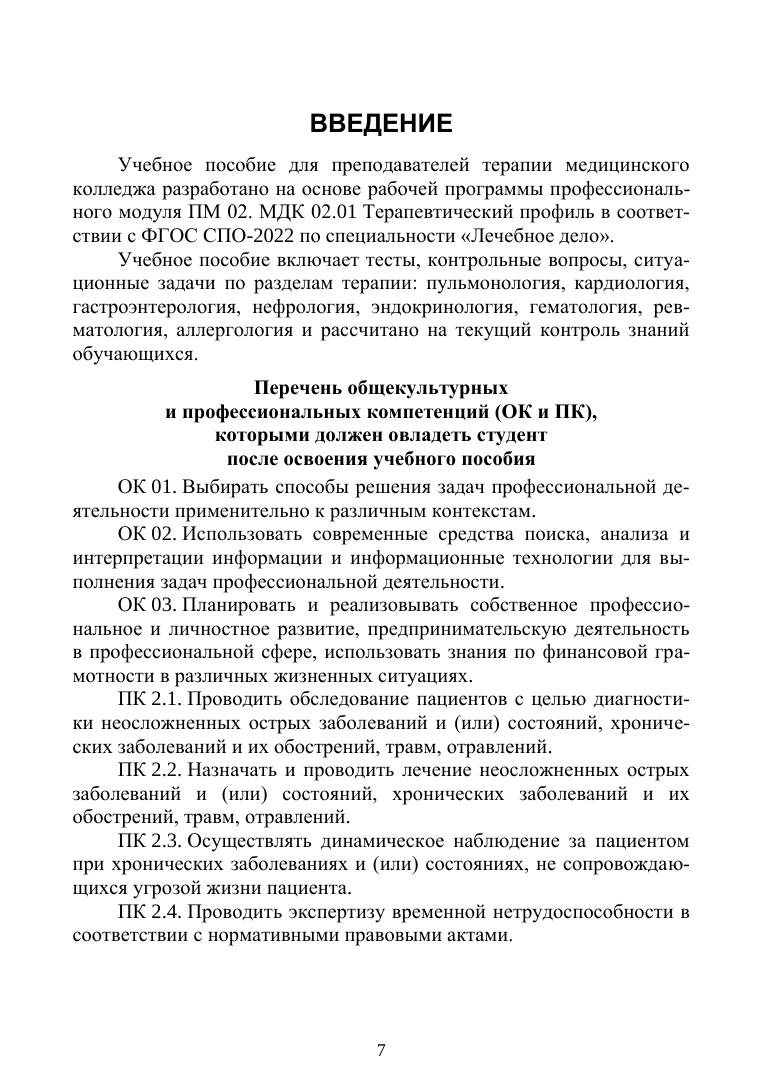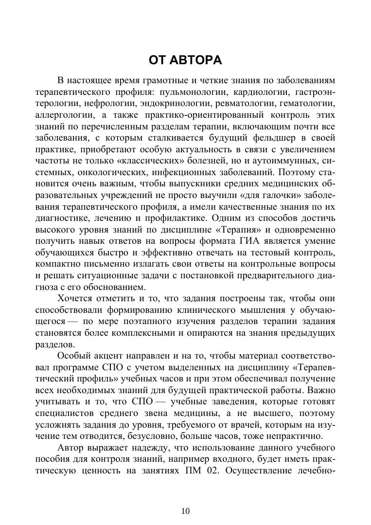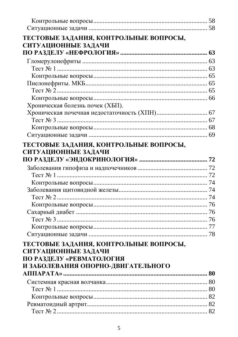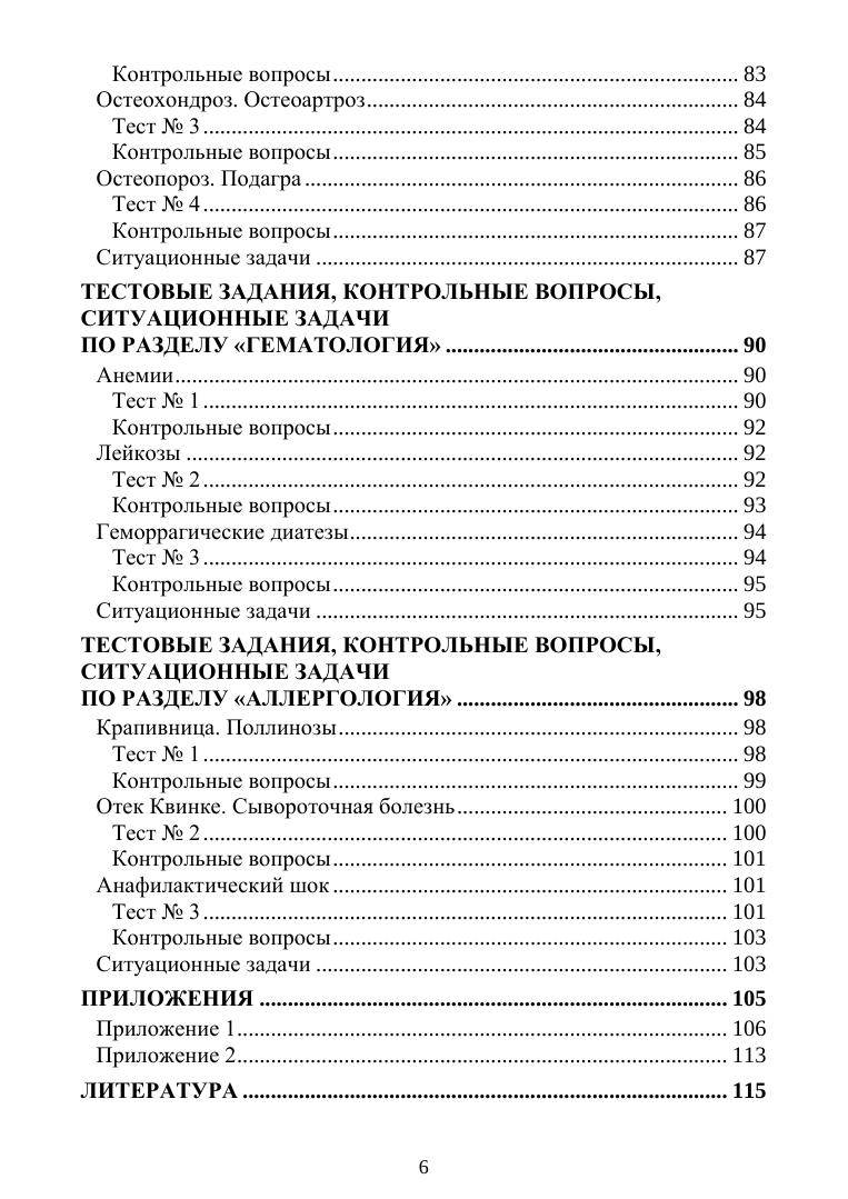 Учебное пособие включает тесты, контрольные вопросы, ситуационные задачи по разделам терапии: пульмонология, кардиология, гастроэнтерология, нефрология, эндокринология, гематология, ревматология, аллергология, и рассчитано на текущий контроль знаний обучающихся. Соответствует современным требованиям Федерального государственного образовательного стандарта среднего профессионального образования и профессиональным квалификационным требованиям.