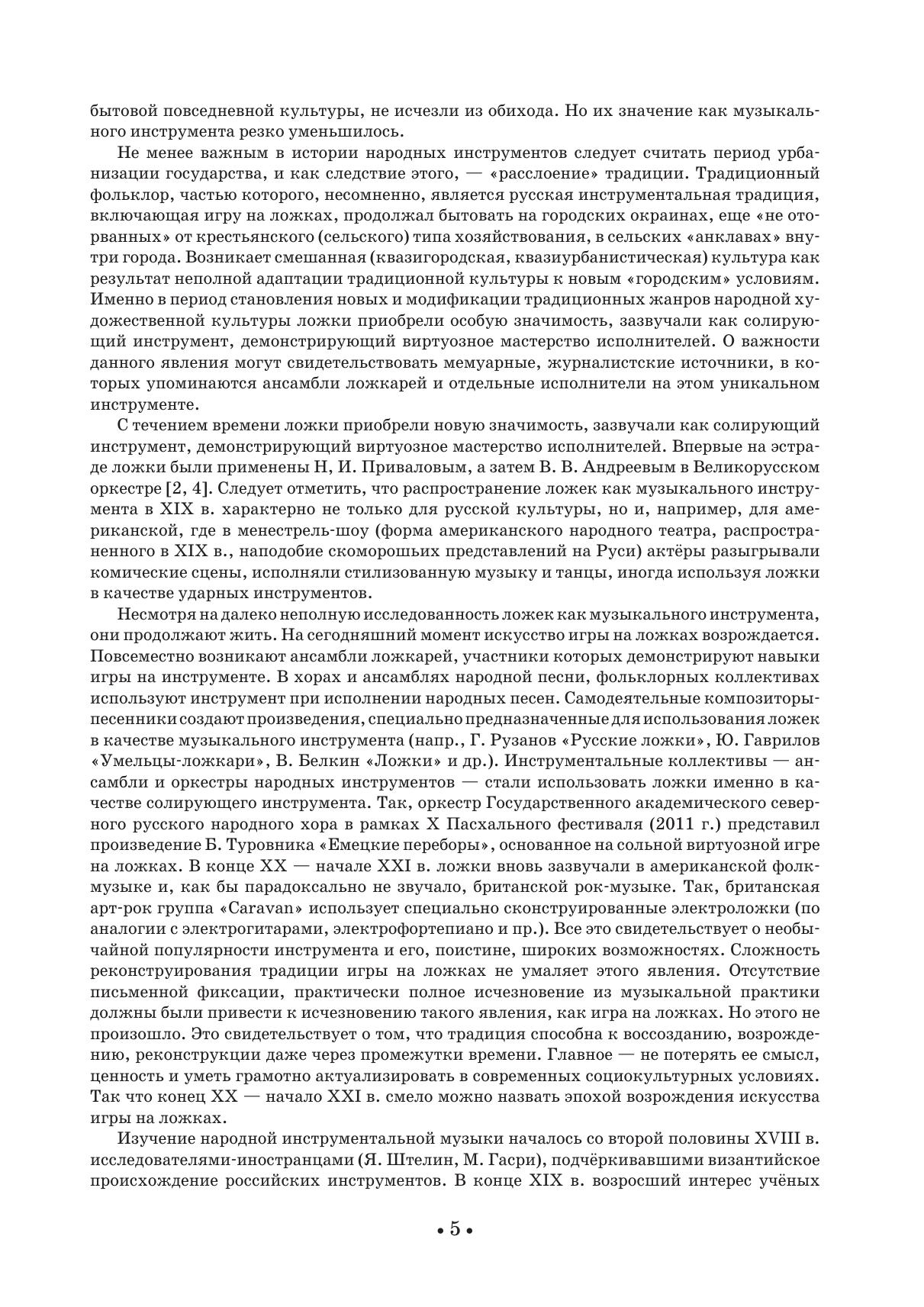 Учебное пособие освещает основные аспекты обучения игре на ложках как музыкальном инструменте, обобщает практический опыт ведения дисциплин на специальности «Народное художественное творчество», направлениях подготовки «Художественное образование», «Педагогическое образование», «Музыкознание и музыкально-прикладное искусство», «Искусство народного пения». Содержит краткие исторические сведения о зарождении ложек как музыкального инструмента, описание приемов и способов игры на ложках, рекомендации по обучению навыкам игры. Издание будет интересно студентам вузов, средних профессиональных учебных заведений, руководителям самодеятельных творческих коллективов и широкому кругу любителей народной музыкальной культуры.