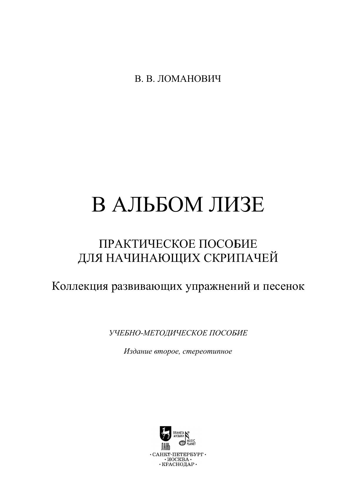 В альбом Лизе. Практическое пособие для начинающих скрипачей. Коллекция развивающих упражнений и песенок