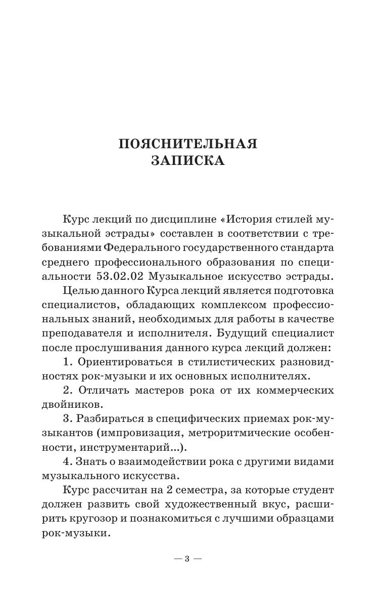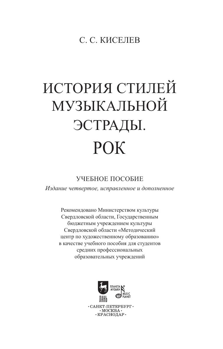Данное учебное пособие представляет собой курс лекций по дисциплине “История стилей музыкальной эстрады. Рок” и предназначено для студентов музыкальных колледжей и училищ. Курс лекций рассчитан на 2 семестра, за которые студент должен развить свой художественный вкус, расширить музыкальный кругозор и познакомиться с лучшими образцами рок музыки и их исполнителями. This textbook respresents a course of lectures on "History of music styles. Rock" and is intended for students of musical colleges and schools. The course of lectures is designed for 2 semesters, during which the student must develop his artistic taste, expand his musical horizons and get acquainted with the best examples of rock music and its performers.