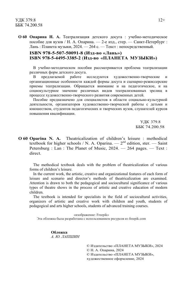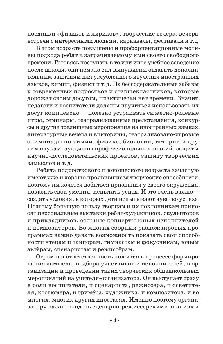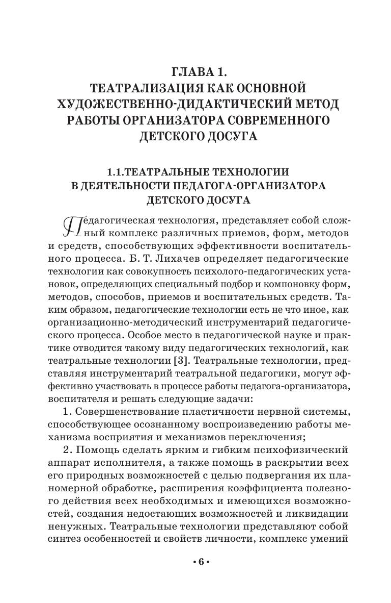 В монографии рассматривается проблема театрализации различных форм детского досуга. В предлагаемой работе исследуются художественно-творческие и организационные особенности каждой формы досуга и сценарно-режиссерские приемы театрализации. Обращается внимание и на педагогическое, и на социокультурное значение различных видов театрализованных зрелищ в процессе художественно-творческого развития современных детей. Работа предназначена для специалистов в области социально-культурной деятельности, организаторов художественно-творческой работы с детьми и юношеством, студентов педагогических и творческих вузов, слушателей курсов повышения квалификации.
