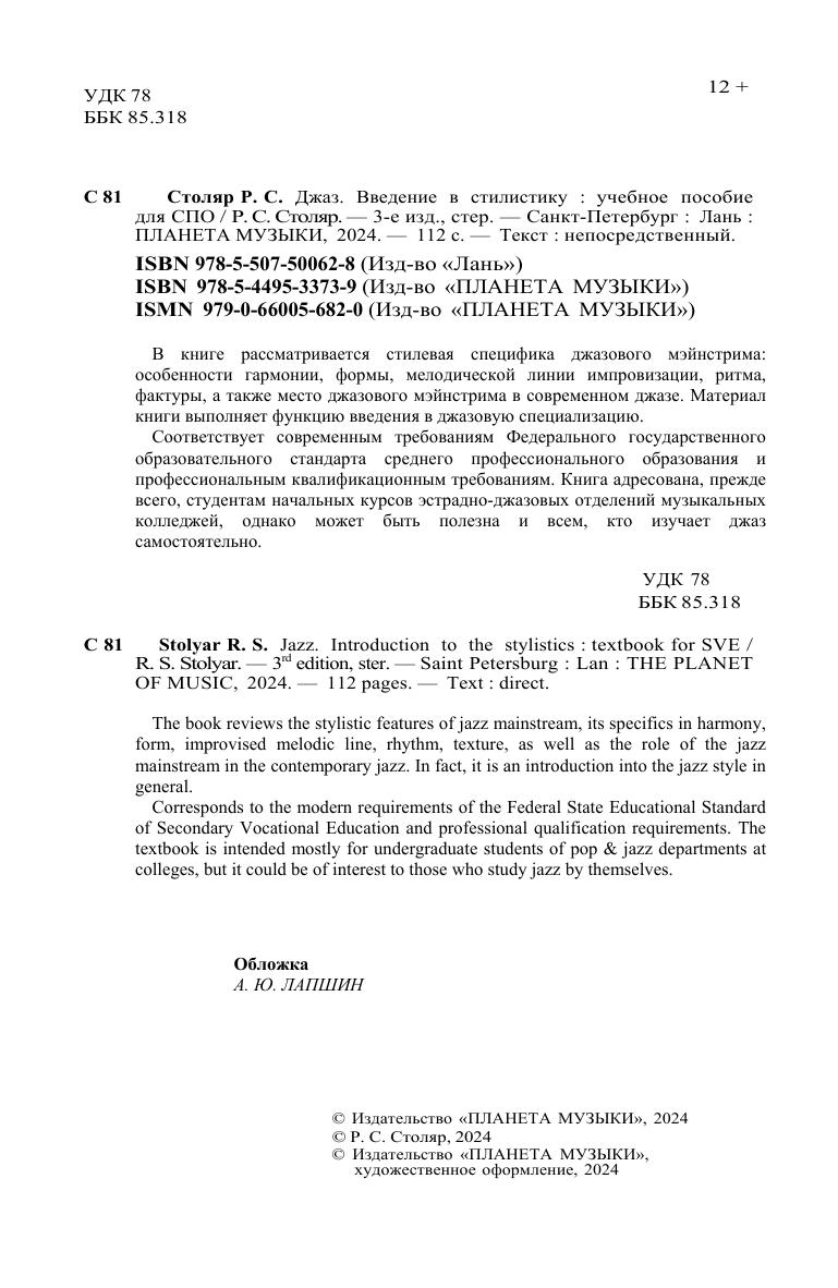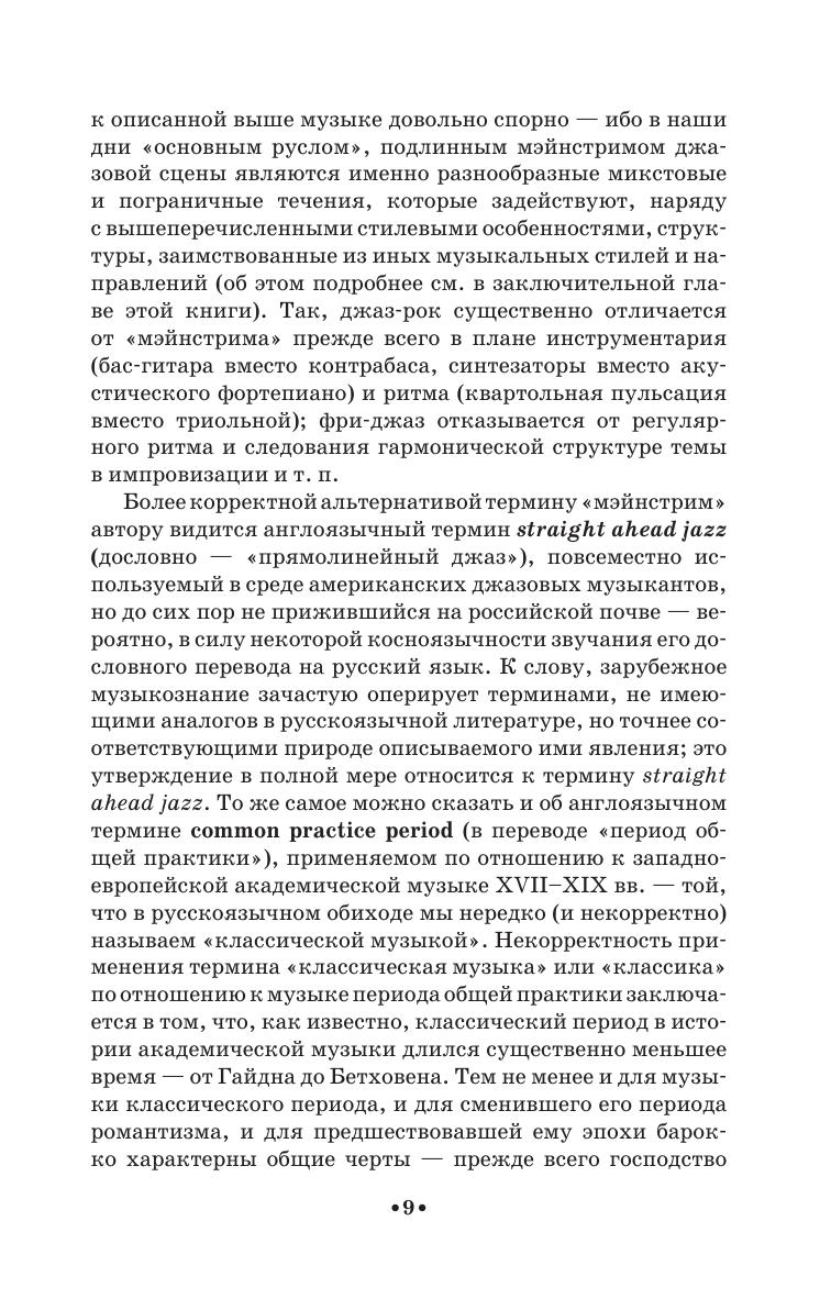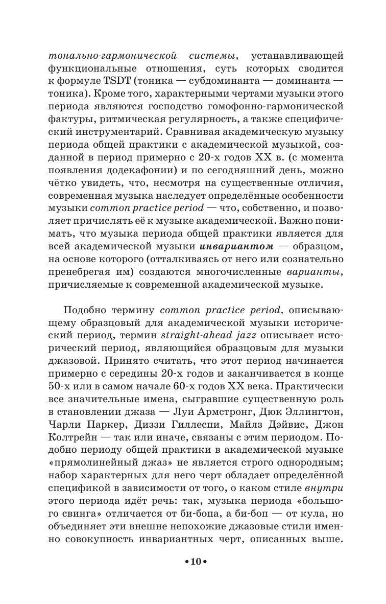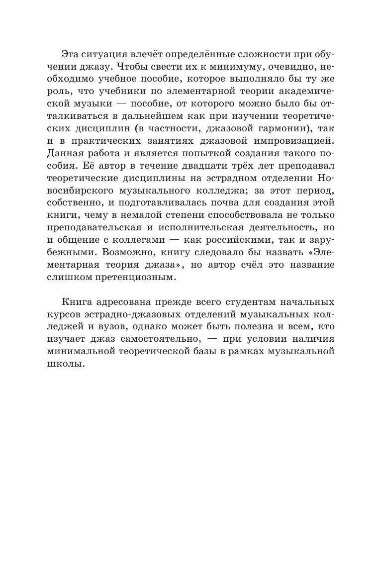 В книге рассматривается стилевая специфика джазового мэйнстрима: особенности гармонии, формы, мелодической линии импровизации, ритма, фактуры, а также место джазового мэйнстрима в современном джазе. Материал книги выполняет функцию введения в джазовую специализацию. Соответствует современным требованиям Федерального государственного образовательного стандарта среднего профессионального образования и профессиональным квалификационным требованиям. Книга адресована, прежде всего, студентам начальных курсов эстрадно-джазовых отделений музыкальных колледжей, однако может быть полезна и всем, кто изучает джаз самостоятельно. The book reviews the stylistic features of jazz mainstream, its specifics in harmony, form, improvised melodic line, rhythm, texture, as well as the role of jazz mainstream in the contemporary jazz. In fact, it is an introduction into the jazz style in general. Corresponds to the modern requirements of the Federal State Educational Standard of Secondary Vocational Education and professional qualification requirements. The textbook is intended mostly for undergraduate students of pop & jazz departments at college level, but it could be of interest to those who study jazz by themselves.
