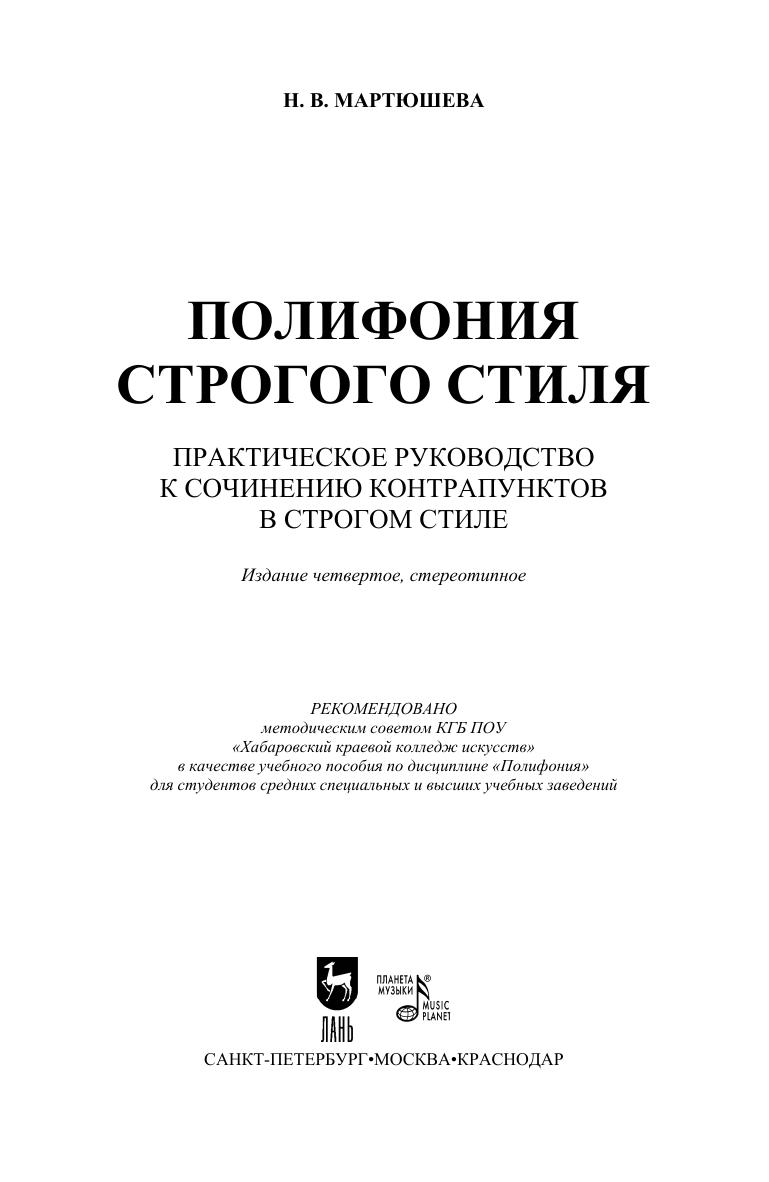 Полифония строгого стиля. Практическое руководство к сочинению контрапунктов в строгом стиле