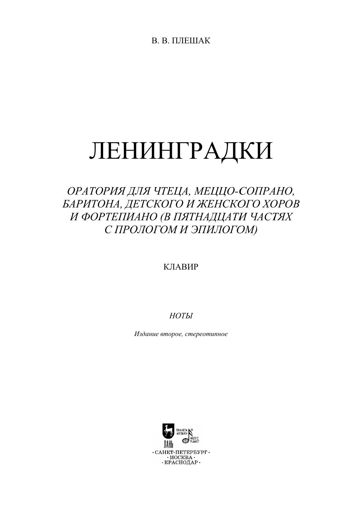 «Ленинградки». Оратория для чтеца, меццо-сопрано, баритона, детского и женского хоров и фортепиано (в пятнадцати частях с прологом и эпилогом). Клавир
