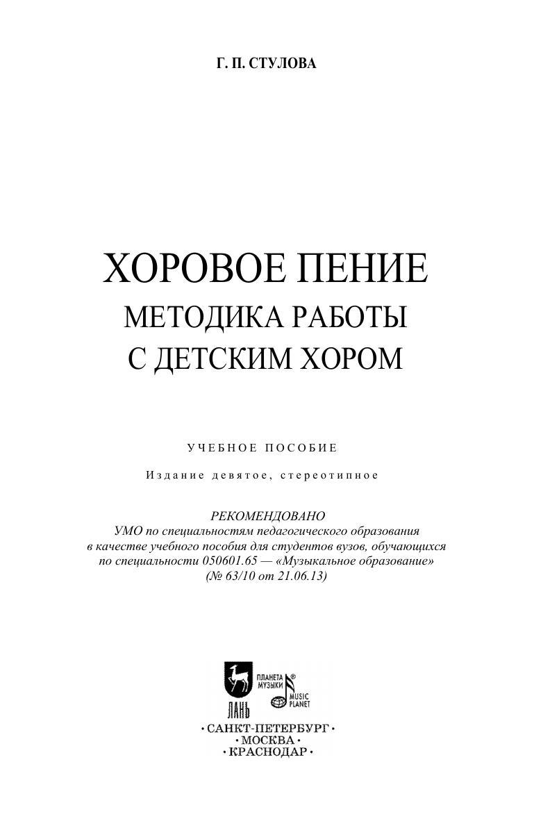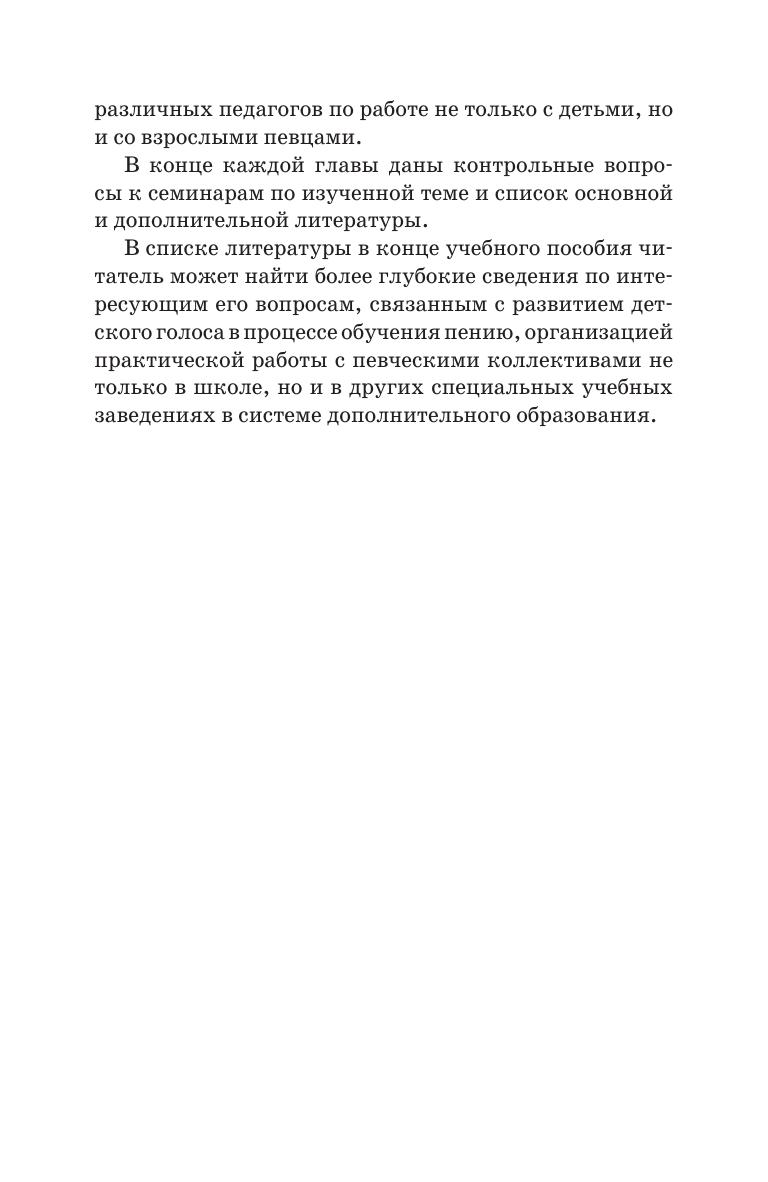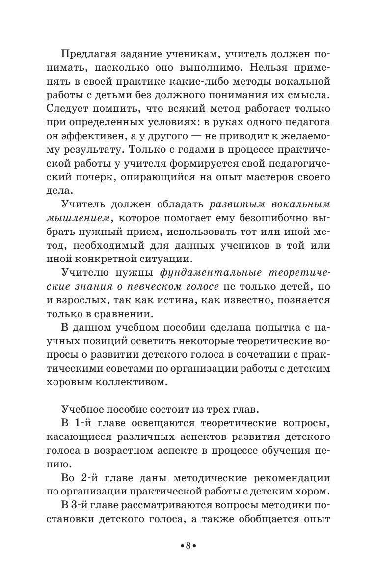В данном учебном пособии представлен материал, освещающий вопросы теории и практики вокально-хоровой работы с детским певческим коллективом. Хоровое пение рассматривается автором как основа отечественной музыкальной культуры и как средство общего и специфического воспитания детей. На основе обобщения опыта вокальной работы как с детьми, так и со взрослыми, сделаны методические выводы, позволяющие читателям понимать сущность и значение различных подходов к обучению пению. Пособие адресовано студентам музыкальных факультетов, учителям музыки общеобразовательных школ, хормейстерам, студентам вузов, занимающимся проблемами вокального воспитания учащихся. Ранее книга издавалась под названием «Хоровое пение в школе».