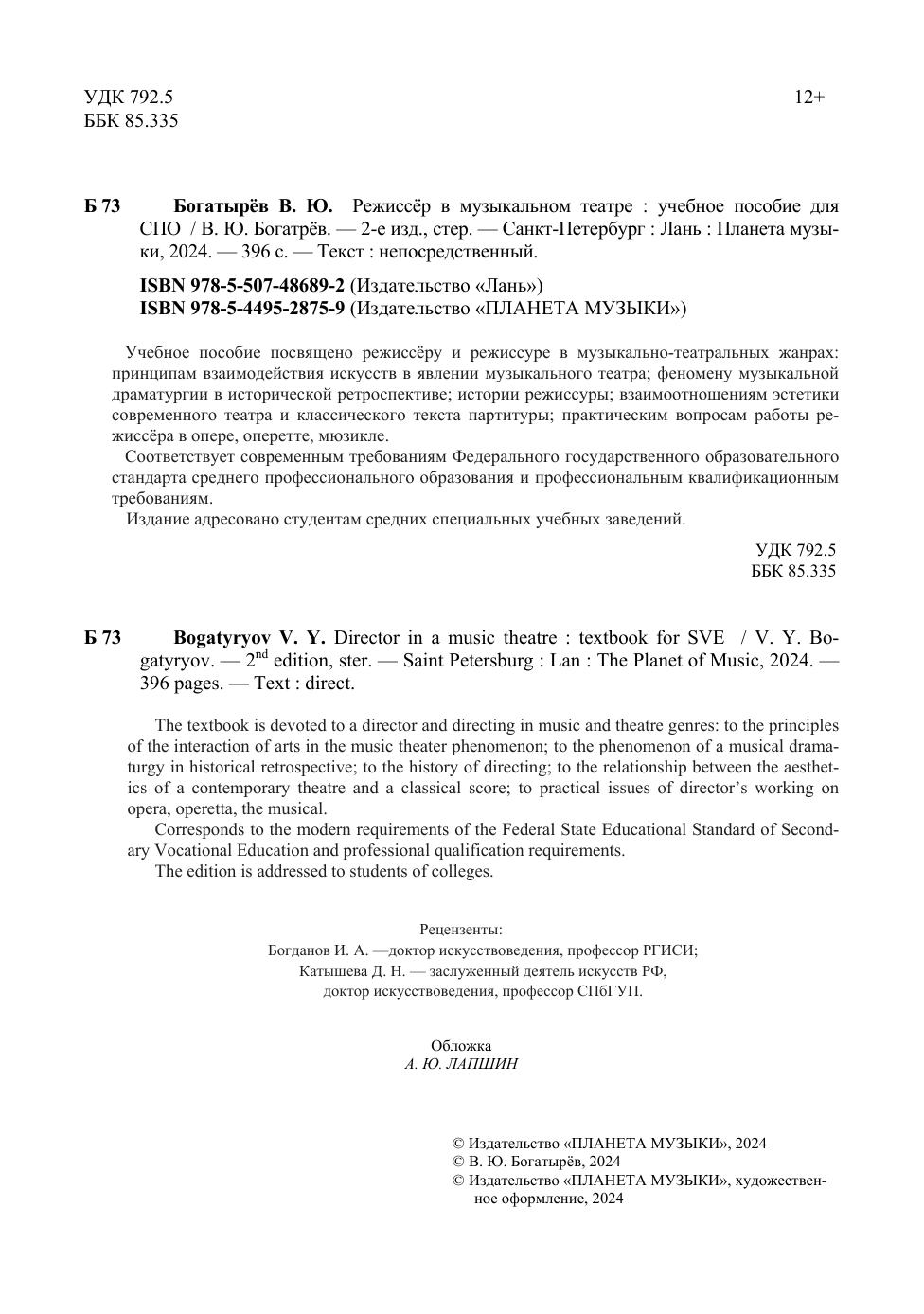 Учебное пособие посвящена режиссёру и режиссуре в музыкально-театральных жанрах: принципам взаимодействия искусств в явлении музыкального театра, феномену музыкальной драматургии в исторической ретроспективе, истории режиссуры, взаимоотношениям эстетики современного театра и классического текста партитуры, практическим вопросам работы режиссёра в опере, оперетте, мюзикле. Издание адресовано студентам средних специальных учебных заведений.