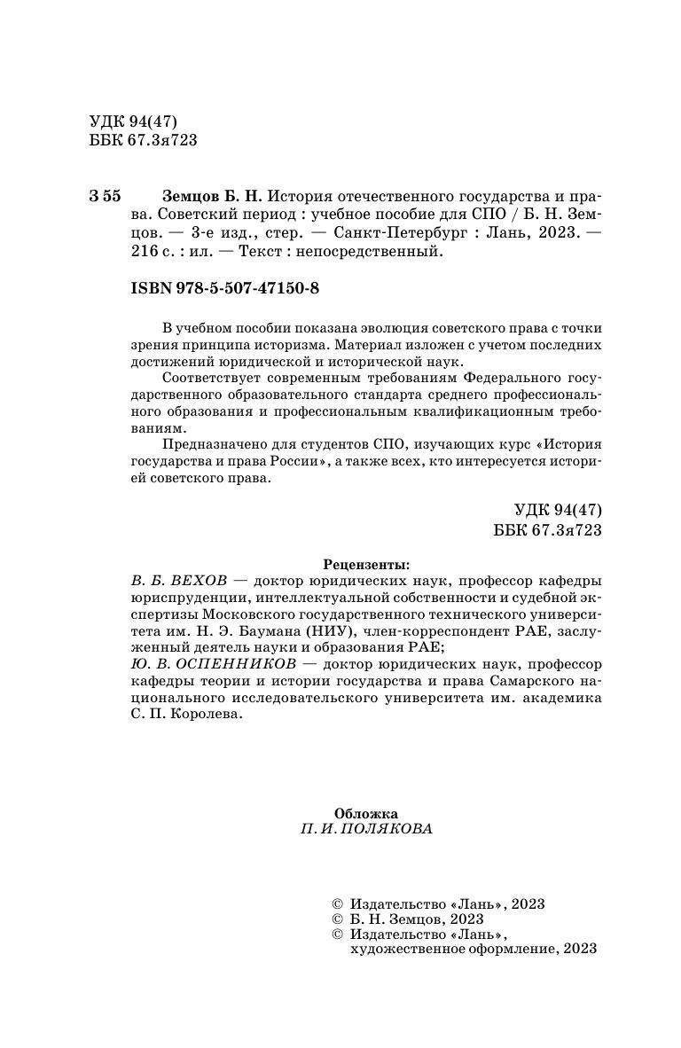 В учебном пособии показана эволюция советского права с точки зрения принципа историзма. Материал изложен с учетом последних достижений юридической и исторической наук. Соответствует современным требованиям Федерального государственного образовательного стандарта среднего профессионального образования и профессиональным квалификационным требованиям. Предназначено для студентов СПО, изучающих курс «История государства и права России», а также всех, кто интересуется историей советского права.