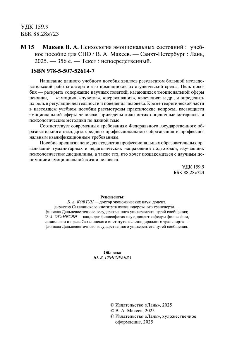 Написание данного учебного пособия явилось результатом большой исследовательской работы автора и его помощников из студенческой среды. Цель пособия — раскрыть содержание научных понятий, касающихся эмоциональной сферы психики, — «эмоции», «чувства», «переживания», «влечения» и др., и определить их роль в регуляции деятельности и поведения человека. Кроме теоретической части в настоящем учебном пособии рассмотрены практические вопросы, касающиеся эмоциональной сферы человека, приведены диагностико-оценочные материалы и психологические методики по данной теме. Соответствует современным требованиям Федерального государственного образовательного стандарта среднего профессионального образования и профессиональным квалификационным требованиям. Пособие предназначено для студентов профессиональных образовательных организаций гуманитарных и педагогических направлений подготовки, изучающих психологические дисциплины, а также тех, кто хочет познакомиться с научным пониманием эмоциональной жизни человека.