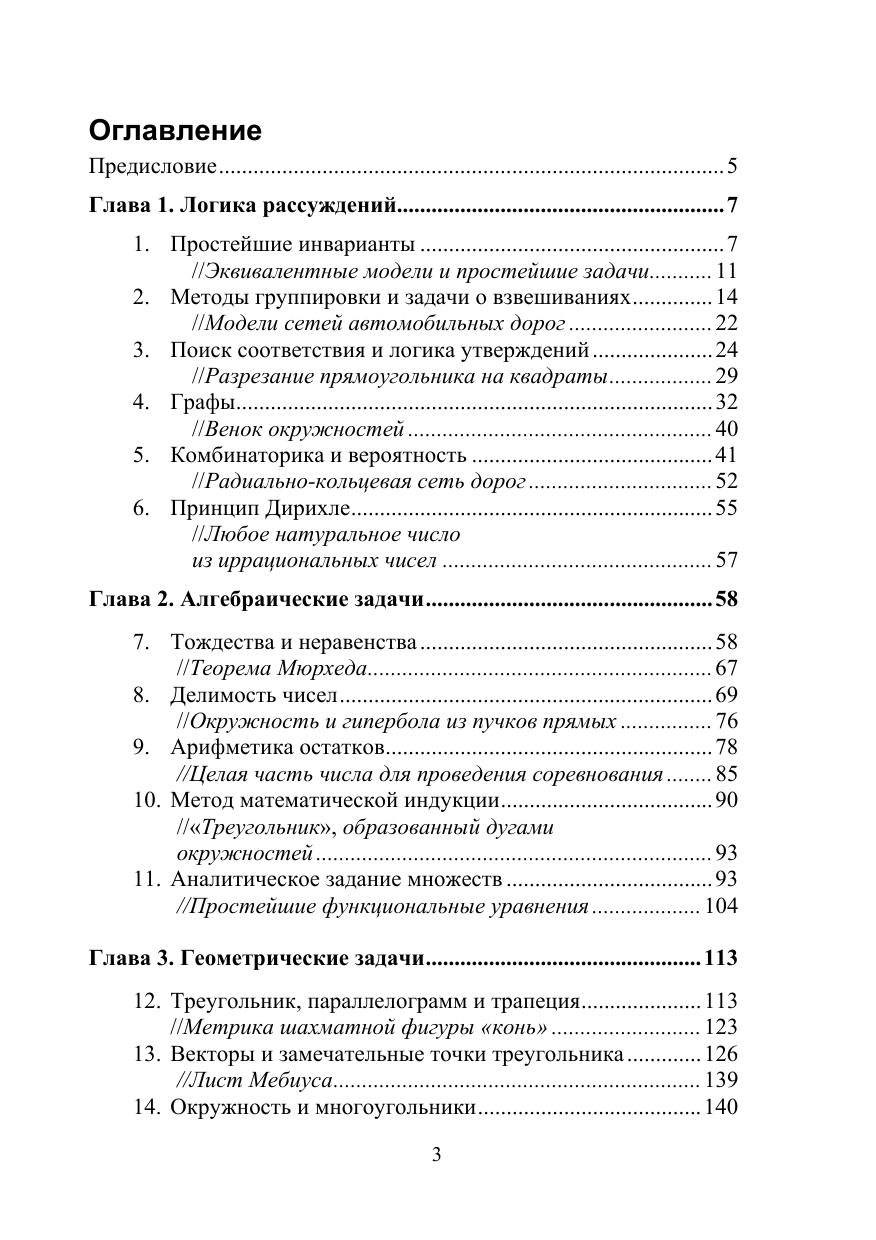 Учебное пособие содержит теоретический материал для олимпиадных задач и их решения по разделам: логические рассуждения, алгебраические задачи и геометрические задачи. Большое внимание уделено геометрическим задачам на построение. Актуальность умения решать олимпиадные задачи вызвана тем, что в последнее время в качестве задач на ОГЭ или на ЕГЭ включены некоторые задачи такого типа. Формально эти задачи относятся к учебному материалу 7–9 классов, например, делимость чисел, арифметическая прогрессия и т. д., но для их решения требуется небольшое расширение изученного материала и тренинг нестандартного мышления, где-то дополнительное построение в геометрической задаче, а где-то эвристика. В пособии реализована вторая линия – разработка простейших моделей. Предназначено для повышения квалификации учителей математики, для студентов педагогического направления университетов при решении задач олимпиад различного уровня и обучающихся по направлению подготовки «Педагогическое образование», для тренинга учащихся при решении задач в заочной математической школе (ЗМШ).