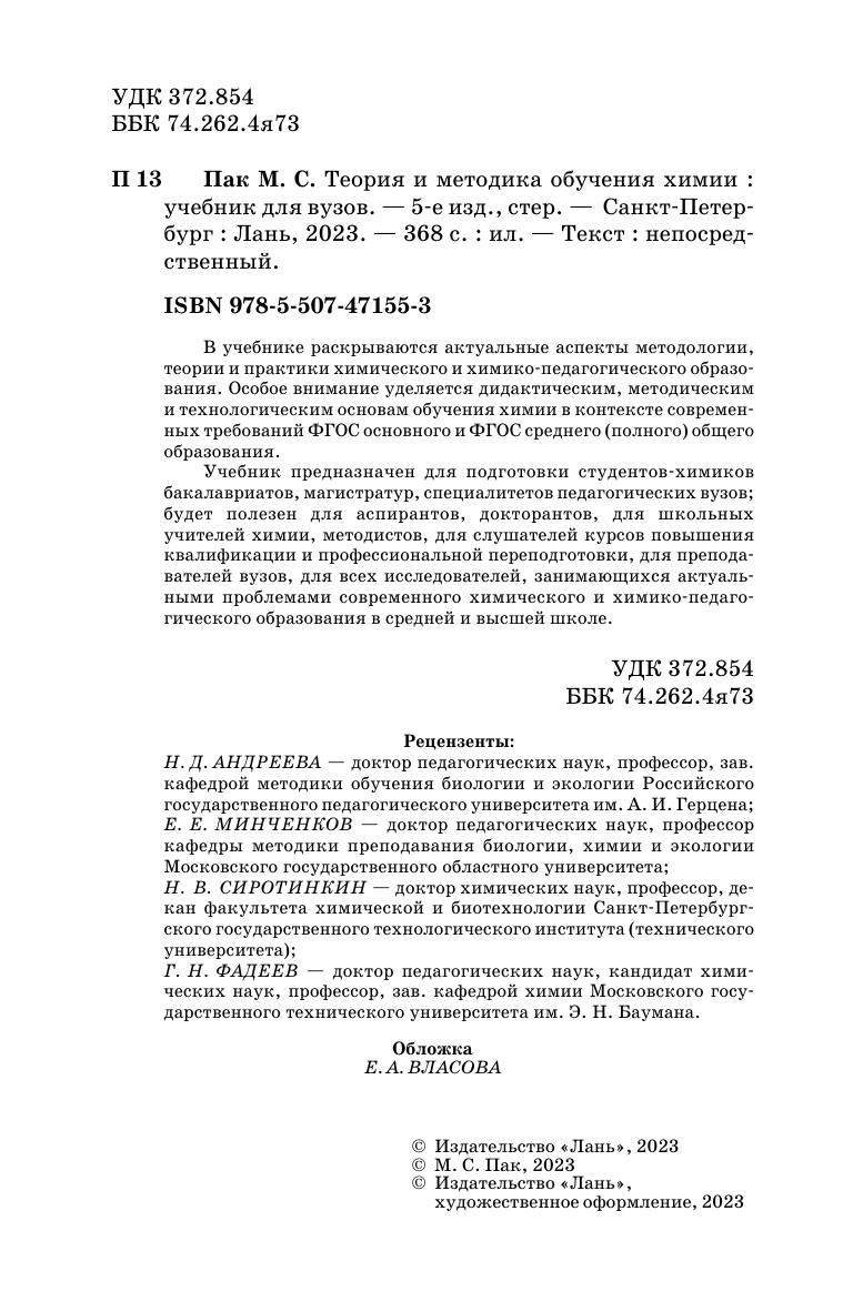 В учебнике раскрываются актуальные аспекты методологии, теории и практики химического и химико-педагогического образования. Особое внимание уделяется дидактическим, методическим и технологическим основам обучения химии в контексте современных требований ФГОС основного и ФГОС среднего (полного) общего образования. Учебник предназначен для подготовки студентов-химиков бакалавриатов, магистратур, специалитетов педагогических вузов, будет полезен для аспирантов, докторантов, для школьных учителей химии, методистов, для слушателей курсов повышения квалификации и профессиональной переподготовки, для преподавателей вузов, для всех исследователей, занимающихся актуальными проблемами современного химического и химико-педагогического образования в средней и высшей школе.