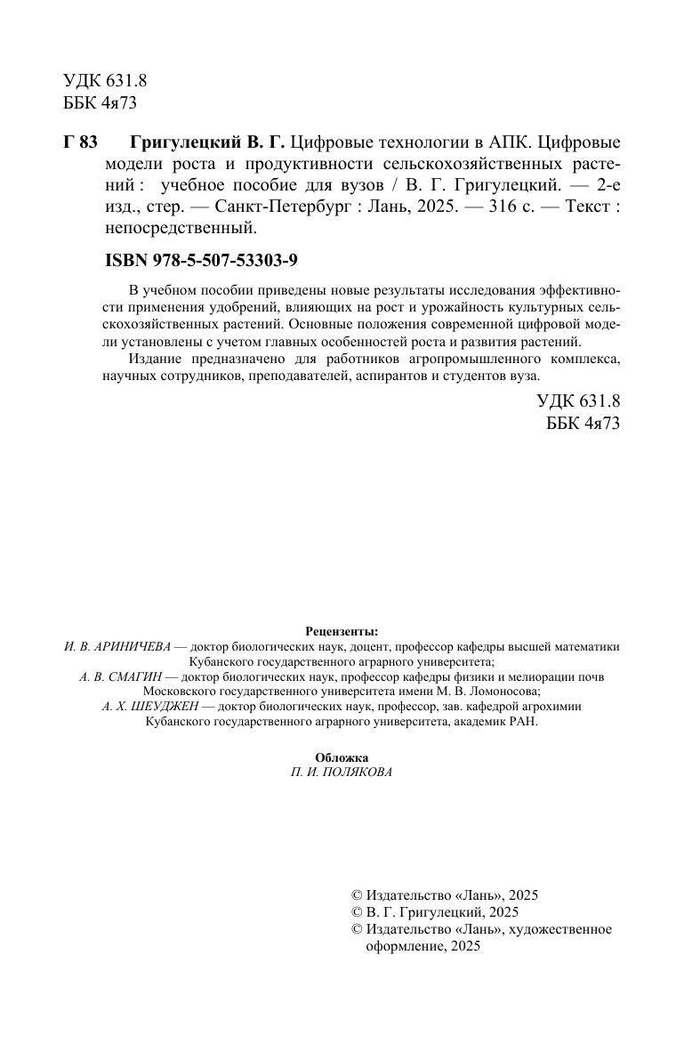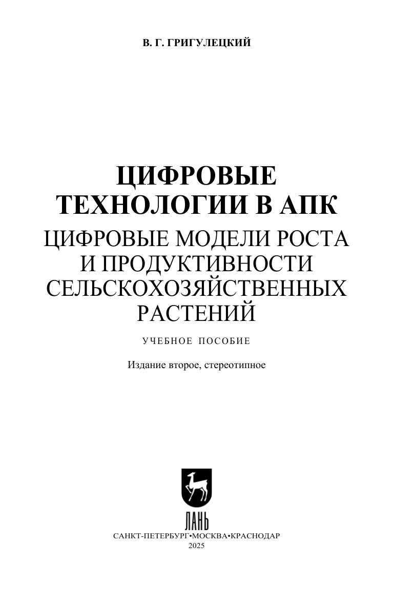 Цифровые технологии в АПК. Цифровые модели роста и продуктивности сельскохозяйственных растений