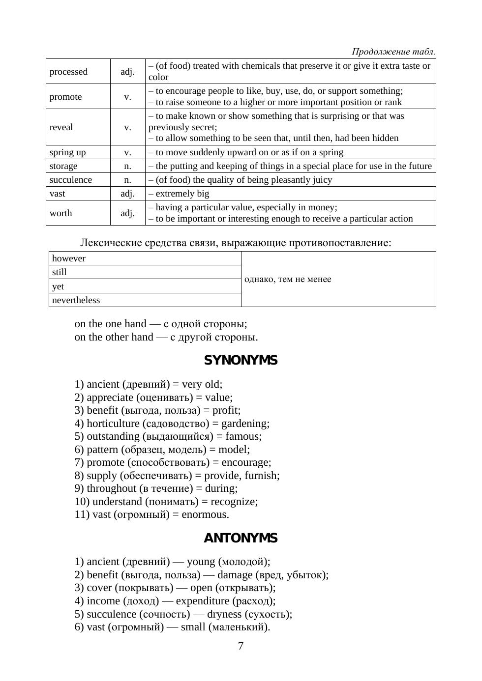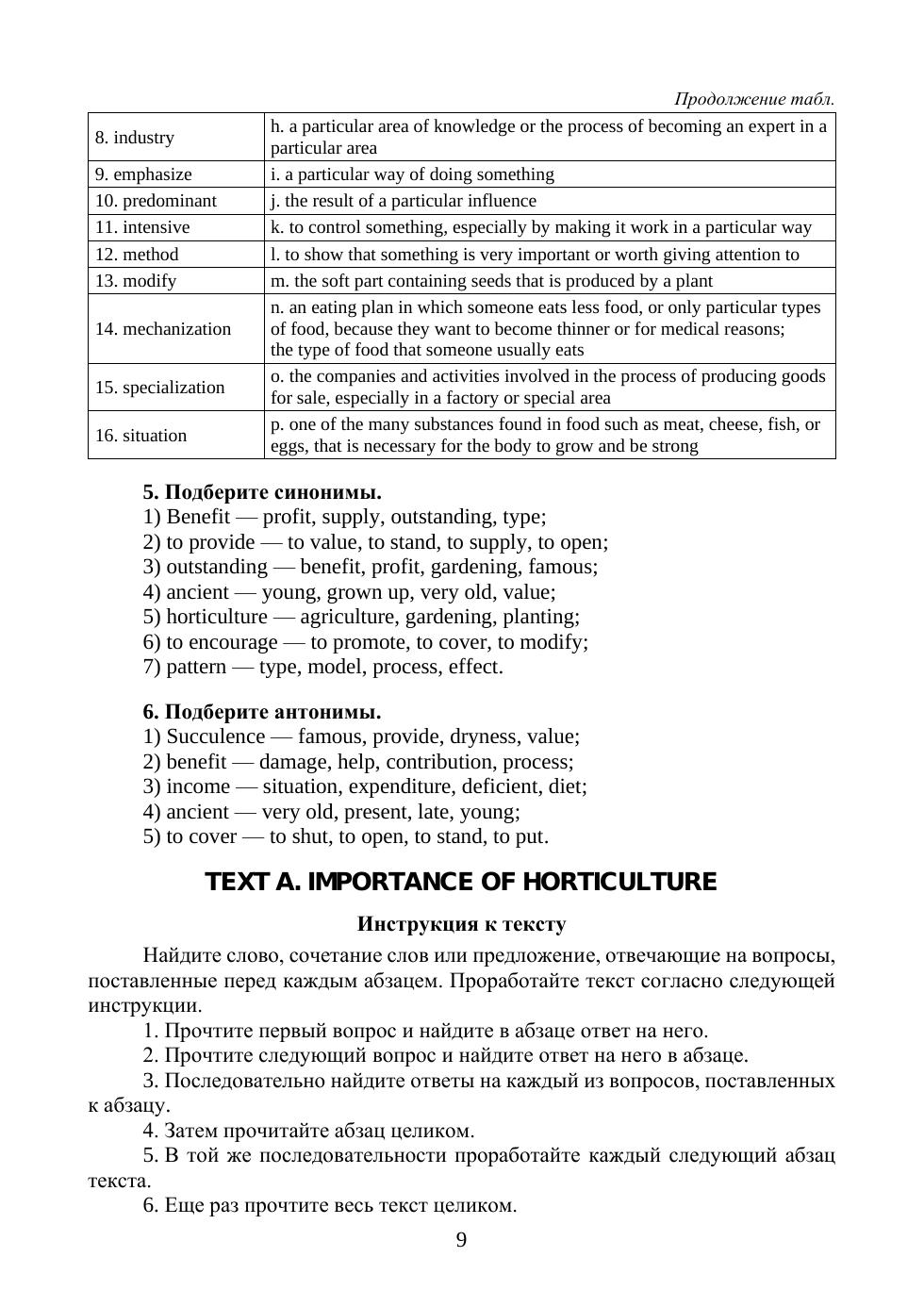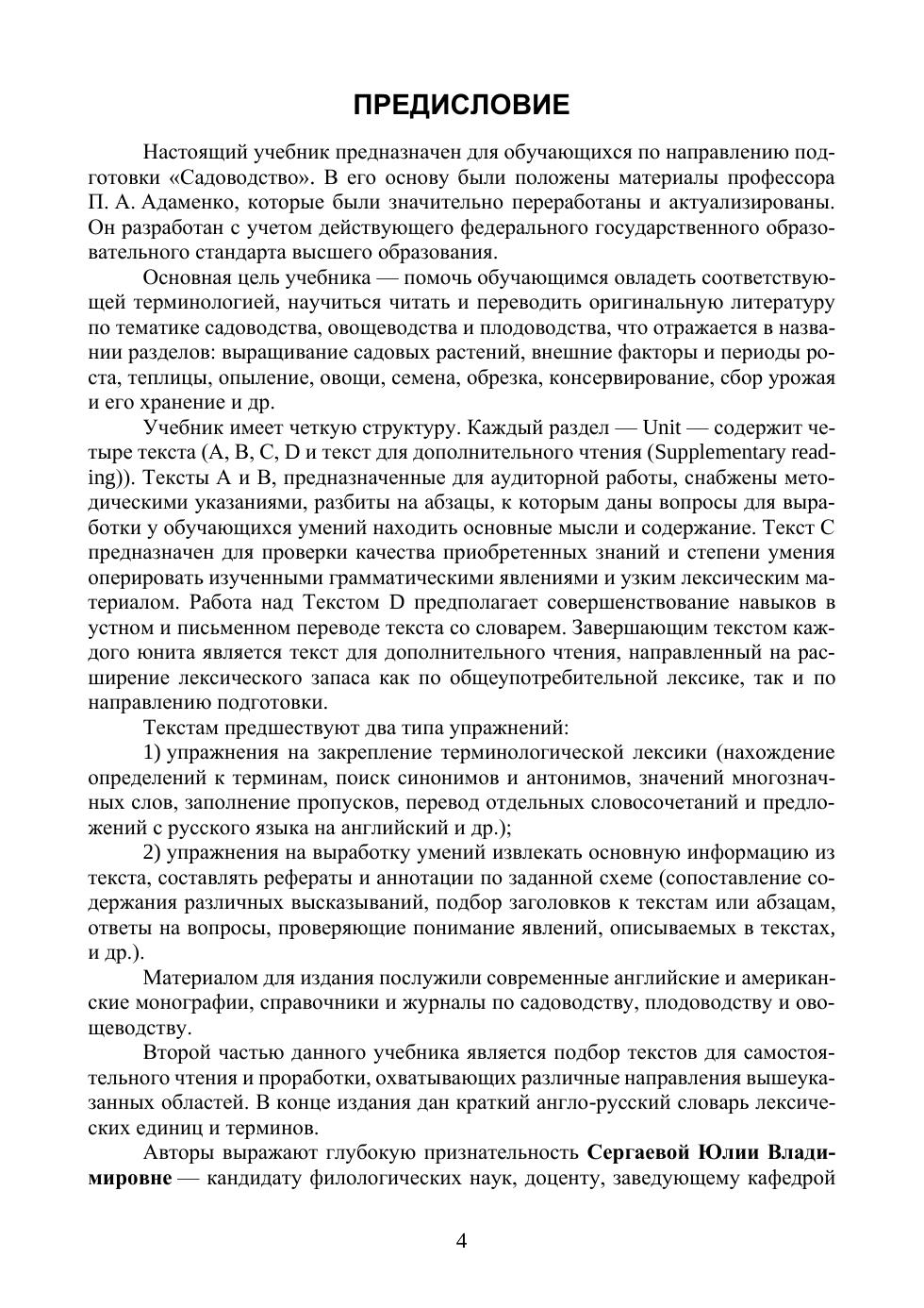 Учебник предназначен главным образом для обучающихся по направлению «Садоводство» и может быть использован на любом уровне подготовки: бакалавриат, магистратура, аспирантура. Учебник составлен в соответствии с Федеральным государственным образовательным стандартом и имеет своей целью помочь обучающимся овладеть терминологическим минимумом, научиться читать и переводить оригинальную литературу по вышеуказанному направлению подготовки.