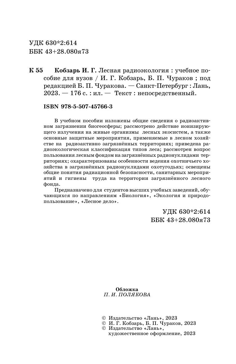 В учебном пособии изложены общие сведения о радиоактивном загрязнении биогеосферы, рассмотрено действие ионизирующего излучения на живые организмы лесных экосистем, а также основные защитные мероприятия, применяемые в лесном хозяйстве на радиоактивно загрязнённых территориях, приведена радиоэкологическая классификация типов леса, рассмотрен вопрос пользования лесным фондом на загрязнённых радионуклидами территориях, охарактеризованы особенности ведения охотничьего хозяйства в загрязнённых радионуклидами охотугодьях, освещены общие понятия радиационной безопасности, санитарных мероприятий и гигиены труда на территории загрязнённого лесного фонда. Предназначено для студентов высших учебных заведений, обучающихся по направлениям «Биология», «Экология и природопользование», «Лесное дело».