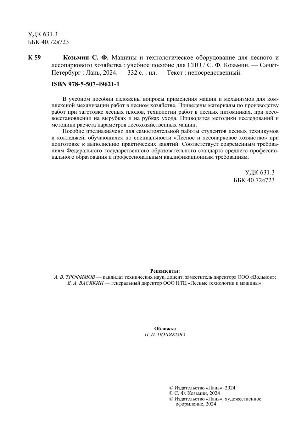 В учебном пособии изложены вопросы применения машин и механизмов для комплексной механизации работ в лесном хозяйстве. Приведены материалы по производству работ при заготовке лесных плодов, технологии работ в лесных питомниках, при лесовосстановлении на вырубках и на рубках ухода. Приводятся методики исследований и методики расчёта параметров лесохозяйственных машин. Пособие предназначено для самостоятельной работы студентов лесных техникумов и колледжей, обучающихся по специальности «Лесное и лесопарковое хозяйство» при подготовке к выполнению практических занятий. Соответствует современным требованиям Федерального государственного образовательного стандарта среднего профессионального образования и профессиональным квалификационным требованиям.