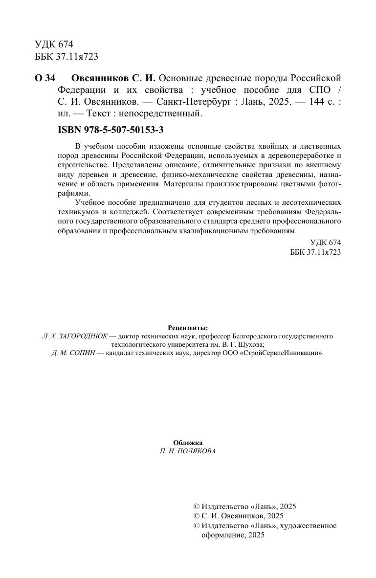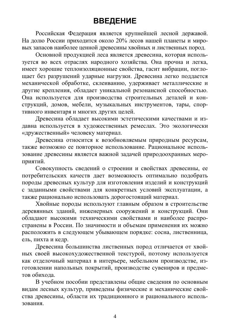 В учебном пособии изложены основные свойства хвойных и лиственных пород древесины Российской Федерации, используемых в деревопереработке и строительстве. Представлены описание, отличительные признаки по внешнему виду деревьев и древесине, физико-механические свойства древесины, назначение и область применения. Материалы проиллюстрированы цветными фотографиями. Учебное пособие предназначено для студентов лесных и лесотехнических техникумов и колледжей. Соответствует современным требованиям Федерального государственного образовательного стандарта среднего профессионального образования и профессиональным квалификационным требованиям.