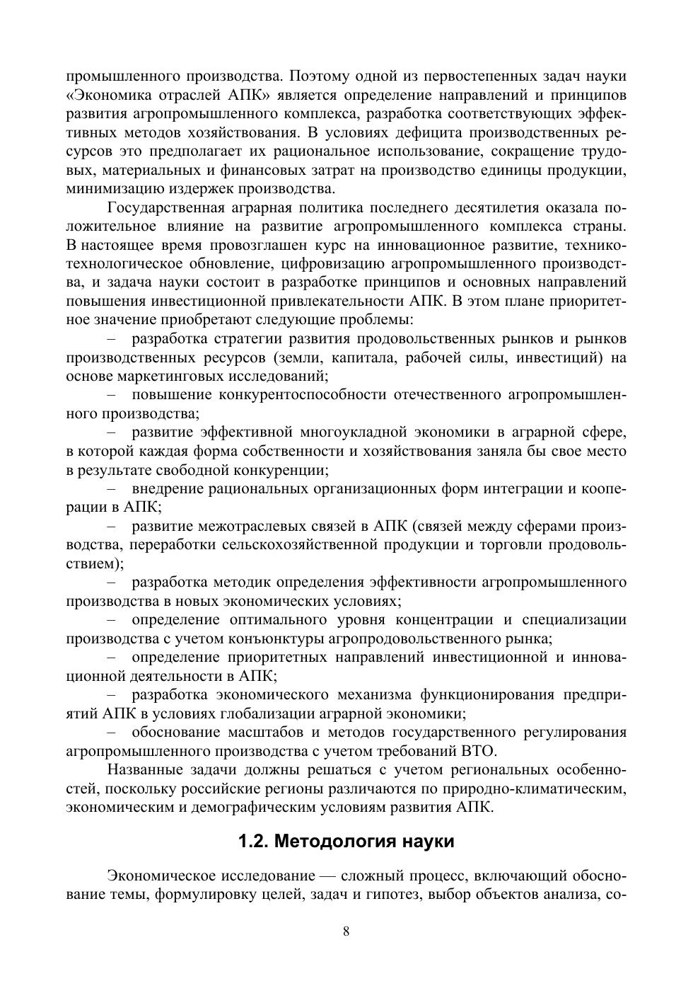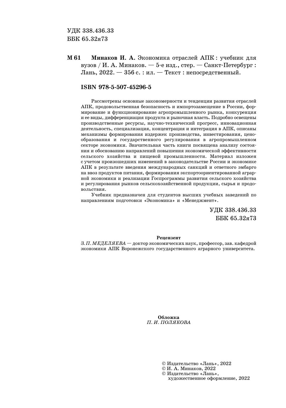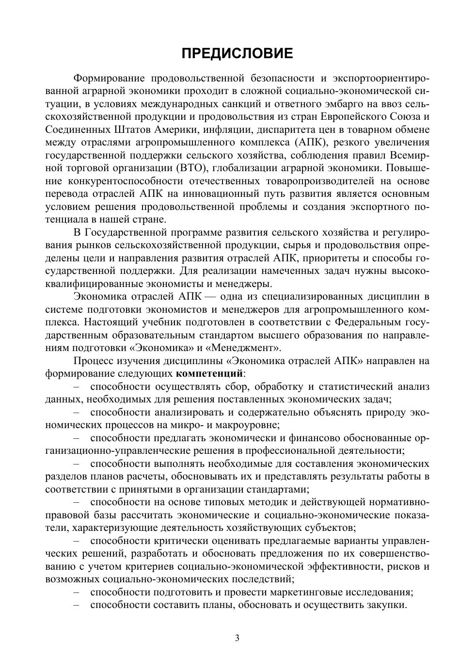 Рассмотрены основные закономерности и тенденции развития отраслей АПК, продовольственная безопасность и импортозамещение в России, формирование и функционирование агропромышленного рынка, конкуренция и ее виды, дифференциация продукта и рыночная власть. Подробно освещены производственные ресурсы, научно-технический прогресс, инновационная деятельность, специализация, концентрация и интеграция в АПК, описаны механизмы формирования издержек производства, инвестирования, ценообразования и государственного регулирования в агропромышленном секторе экономики. Значительная часть книги посвящена анализу состояния и обоснованию направлений повышения экономической эффективности сельского хозяйства и пищевой промышленности. Материал изложен с учетом произошедших изменений в законодательстве России и экономике АПК в результате введения международных санкций и ответного эмбарго на ввоз продуктов питания, формирования экспортоориентированной аграрной экономики и реализации Госпрограммы развития сельского хозяйства и регулирования рынков сельскохозяйственной продукции, сырья и продовольствия.