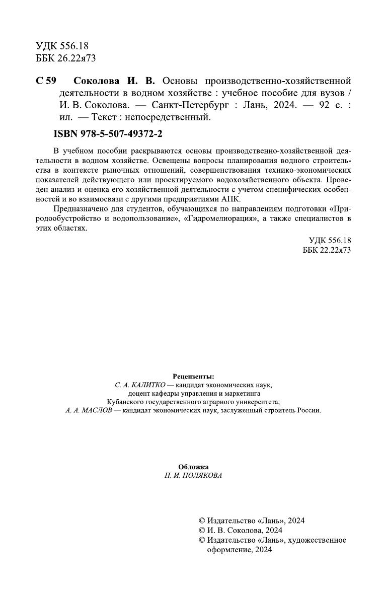 Основы производственно-хозяйственной деятельности в водном хозяйстве