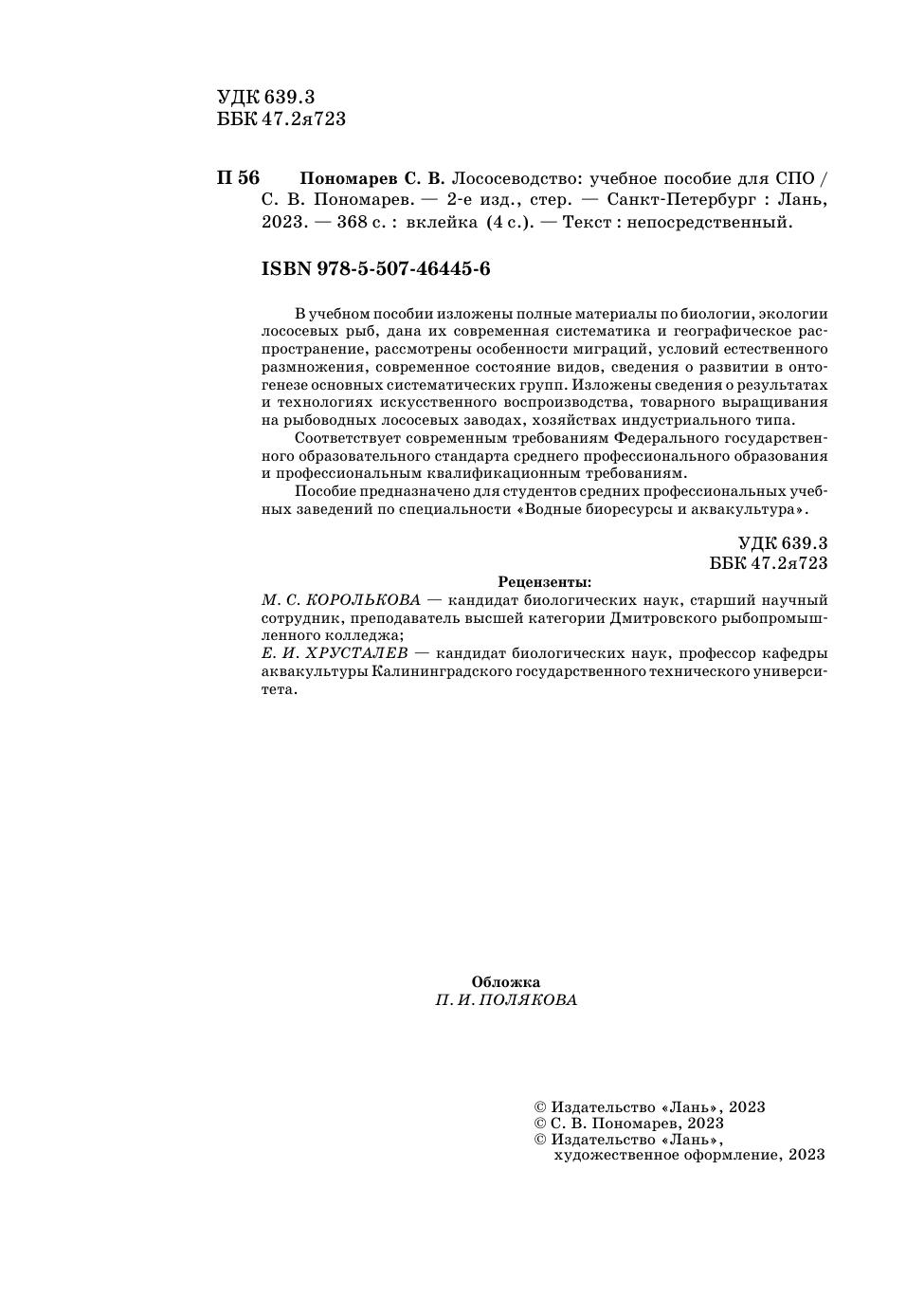 В учебном пособии изложены полные материалы по биологии, экологии лососевых рыб, дана их современная систематика и географическое распространение, рассмотрены особенности миграций, условий естественного размножения, современное состояние видов, сведения о развитии в онтогенезе основных систематических групп. Изложены сведения о результатах и технологиях искусственного воспроизводства, товарного выращивания на рыбоводных лососевых заводах, хозяйствах индустриального типа. Соответствует современным требованиям Федерального государственного образовательного стандарта среднего профессионального образования и профессиональным квалификационным требованиям. Пособие предназначено для студентов средних профессиональных учебных заведений по специальности «Водные биоресурсы и аквакультура».