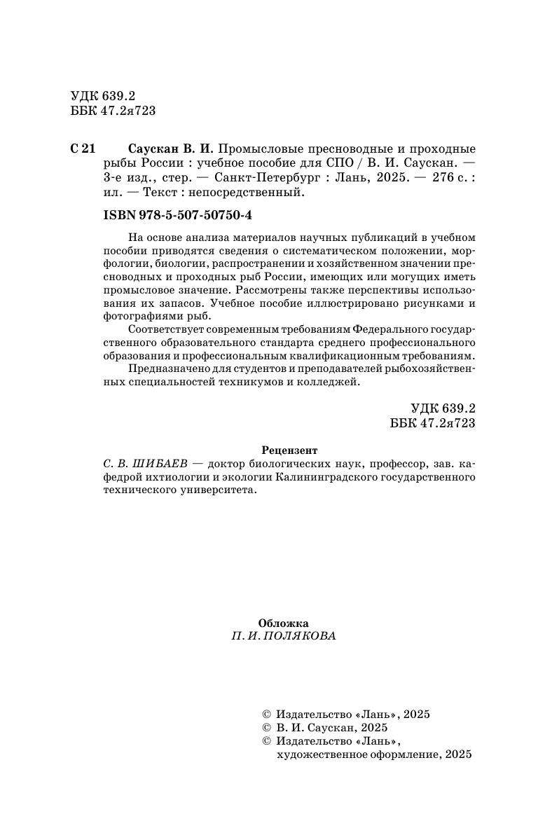 На основе анализа материалов научных публикаций в учебном пособии приводятся сведения о систематическом положении, морфологии, биологии, распространении и хозяйственном значении пресноводных и проходных рыб России, имеющих или могущих иметь промысловое значение. Рассмотрены также перспективы использования их запасов. Учебное пособие иллюстрировано рисунками и фотографиями рыб. Соответствует современным требованиям Федерального государственного образовательного стандарта среднего профессионального образования и профессиональным квалификационным требованиям. Предназначено для студентов и преподавателей рыбохозяйственных специальностей техникумов и колледжей.