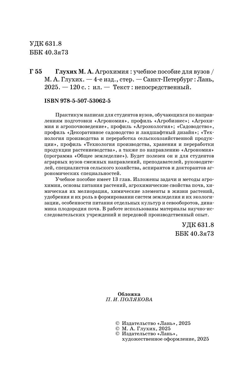 Практикум написан для студентов вузов, обучающихся по направлениям подготовки «Агрономия», профиль «Агробизнес», «Агрохимия и агропочвоведение», профиль «Агроэкология», «Садоводство», профиль «Декоративное садоводство и ландшафтный дизайн», «Технология производства и переработка сельскохозяйственной продукции», профиль «Технология производства, хранения и переработки продукции растениеводства», а также по направлению «Агрономия» (программа «Общее земледелие»). Будет полезен он и для студентов аграрных вузов смежных направлений, преподавателей, руководителей, специалистов сельского хозяйства, аспирантов и докторантов агрономических специальностей. Учебное пособие имеет 13 глав. Изложены задачи и методы агрохимии, основы питания растений, агрохимические свойства почв, химическая их мелиорация, химические элементы в жизни растений, удобрения и их роль в формировании систем земледелия и их экологизации, особенности питания отдельных культур и севооборотов, динамика плодородия почв. В работе использованы материалы научно-исследовательских учреждений и передовой производственный опыт.