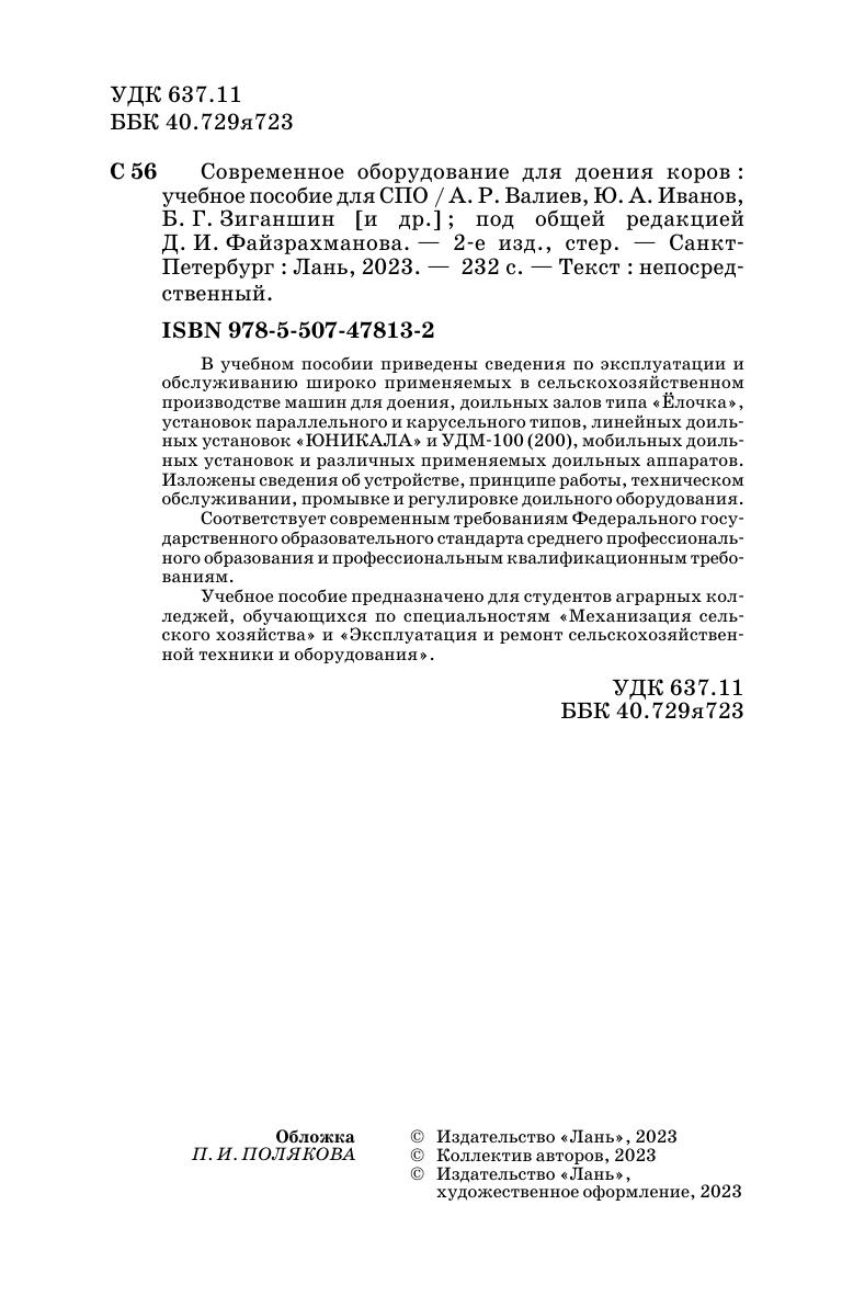 В учебном пособии приведены сведения по эксплуатации и обслуживанию широко применяемых в сельскохозяйственном производстве машин для доения, доильных залов типа «Ёлочка», установок параллельного и карусельного типов, линейных доильных установок «ЮНИКАЛА» и УДМ100 (200), мобильных доильных установок и различных применяемых доильных аппаратов. Изложены сведения об устройстве, принципе работы, техническом обслуживании, промывке и регулировке доильного оборудования. Соответствует современным требованиям Федерального государственного образовательного стандарта среднего профессионального образования и профессиональным квалификационным требованиям. Учебное пособие предназначено для студентов аграрных колледжей, обучающихся по специальностям «Механизация сельского хозяйства» и «Эксплуатация и ремонт сельскохозяйственной техники и оборудования».