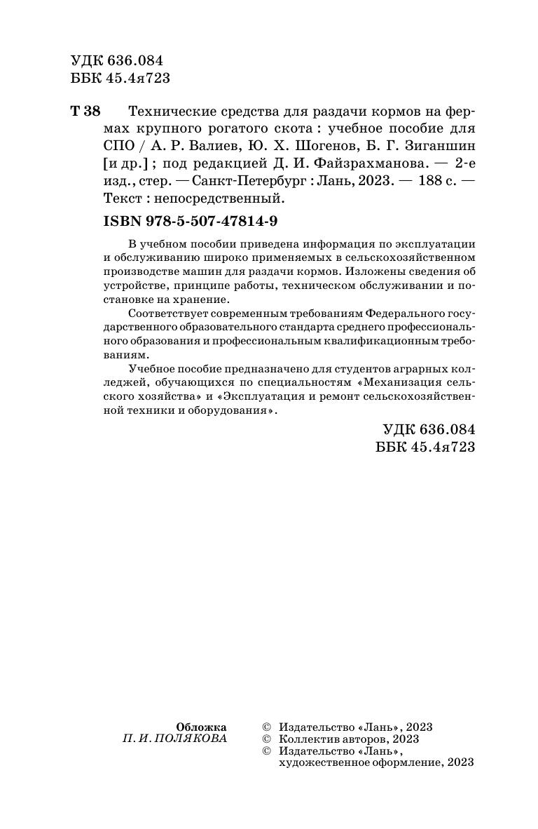 В учебном пособии приведена информация по эксплуатации и обслуживанию широко применяемых в сельскохозяйственном производстве машин для раздачи кормов. Изложены сведения об устройстве, принципе работы, техническом обслуживании и постановке на хранение. Соответствует современным требованиям Федерального государственного образовательного стандарта среднего профессионального образования и профессиональным квалификационным требованиям. Учебное пособие предназначено для студентов аграрных колледжей, обучающихся по специальностям «Механизация сельского хозяйства» и «Эксплуатация и ремонт сельскохозяйственной техники и оборудования».