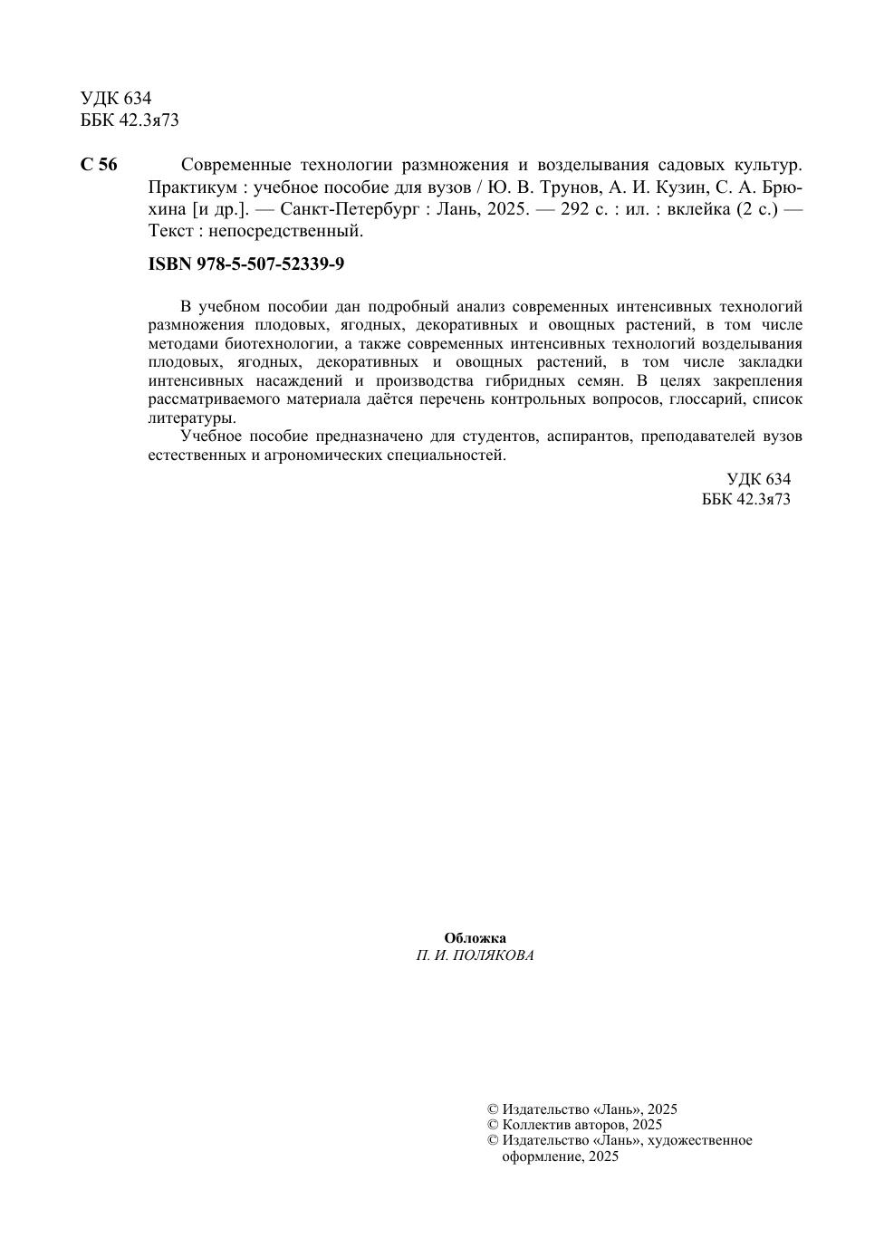 Современные технологии размножения и возделывания садовых культур. Практикум
