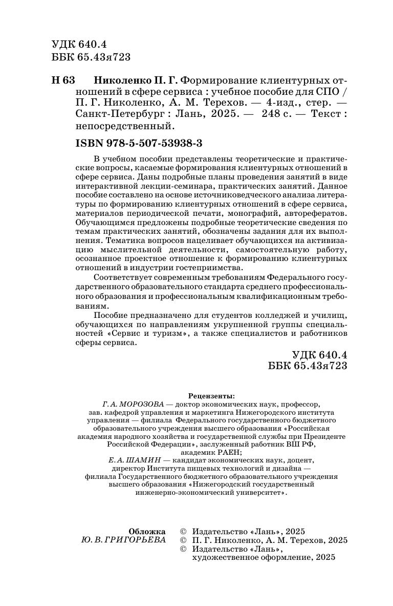 В учебном пособии представлены теоретические и практические вопросы, касаемые формирования клиентурных отношений в сфере сервиса. Даны подробные планы проведения занятий в виде интерактивной лекции-семинара, практических занятий. Данное пособие составлено на основе источниковедческого анализа литературы по формированию клиентурных отношений в сфере сервиса, материалов периодической печати, монографий, авторефератов. Обучающимся предложены подробные теоретические сведения по темам практических занятий, обозначены задания для их выполнения. Тематика вопросов нацеливает обучающихся на активизацию мыслительной деятельности, самостоятельную работу, осознанное — проектное отношение к формированию клиентурных отношений в индустрии гостеприимства. Соответствует современным требованиям Федерального государственного образовательного стандарта среднего профессионального образования и профессиональным квалификационным требованиям. Пособие предназначено для студентов колледжей и училищ, обучающихся по направлениям укрупненной группы специальностей «Сервис и туризм», а также специалистов и работников сферы сервиса.
