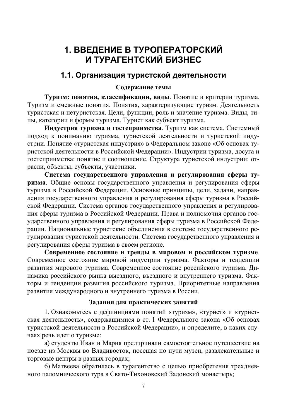 Практикум включает в себя методические рекомендации и практические материалы, необходимые для изучения дисциплины «Туроператорская и турагентская деятельность». Издание содержит шесть разделов и 24 темы, задания для практических занятий и самостоятельной работы, терминологический словарь, список литературы, вопросы для самопроверки.