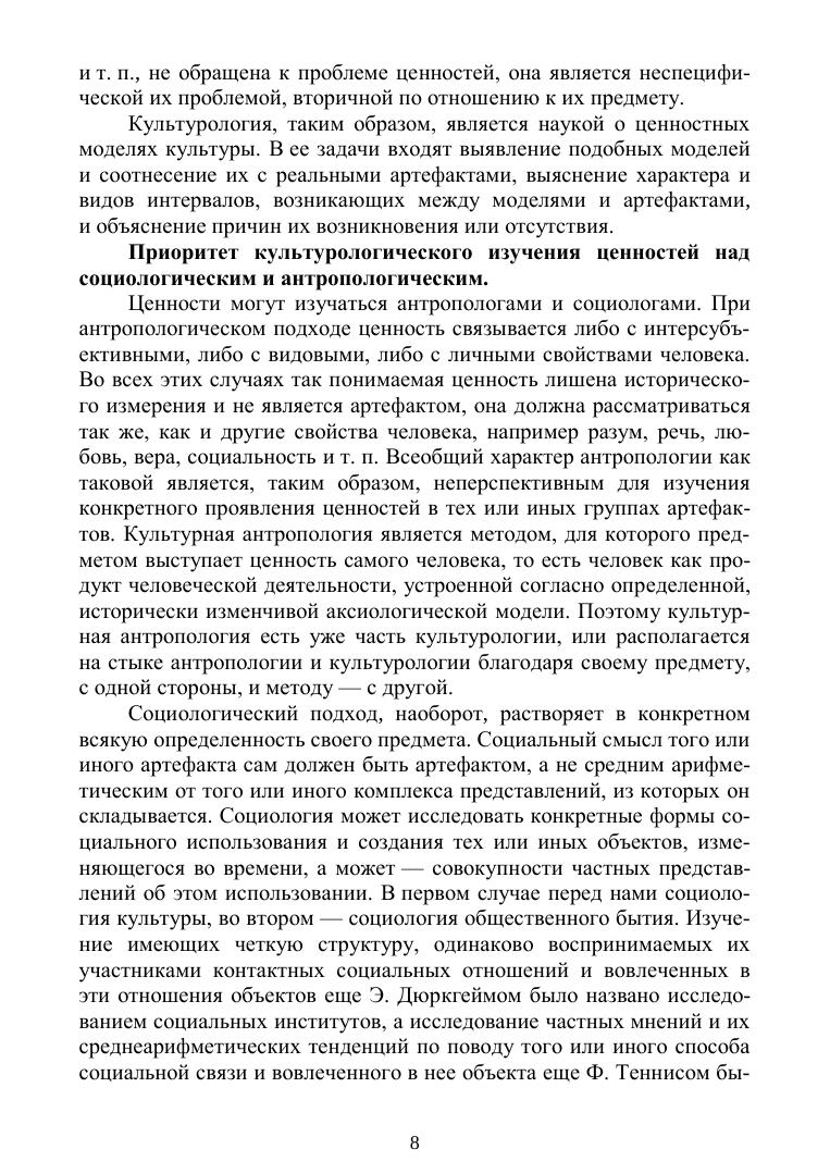 В данном учебном пособии обсуждается роль ценностей в человеческом бытии и человеческом познании. Ценность определяется как экзистенциальный центр бытия и познания человека и интегральная порождающая модель всех артефактов культуры, как выражение уникального места человека в космосе. Субъективность и моделирующий характер ценности сравниваются с другими носителями аналогичных свойств: художественным образом, познавательной истиной, практической пользой, социальной нормой, формами межсубъектного приобщения. Теоретическая концепция ценностей, представленная в первой части пособия, спроецирована в сферу культуры. Поэтому во второй и третьей частях рассматриваются ценностные модели, порождающие важнейшие исторические типы культуры, динамику ее морфологии, интервалы между реальным бытием и тезаурусами, описывающими это бытие. Таким образом, ценности показаны как важнейшая движущая сила исторических изменений, прослеженных от периода антропосоциокультурогенеза, через формы традиционной культуры к формам креативной культуры. Пособие предназначено для студентов высших учебных заведений, обучающихся по направлению подготовки «Культурология».