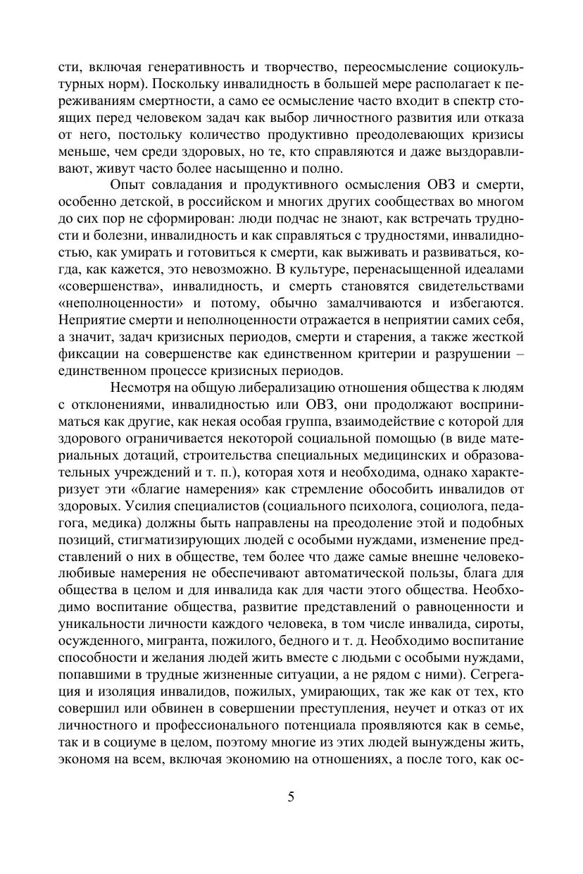 Цель данного пособия — разработка направлений совершенствования подготовки педагогов, медицинских и социальных работников и семьи к продуктивному общению и работе с детьми и взрослыми с ограниченными возможностями здоровья, повышение инклюзивной культуры специалистов и населения. Обучение и воспитание личности, семьи и всего общества в контексте инклюзивного и развивающего подходов — комплексная задача, решение которой предполагает разработку механизмов реализации образовательных и воспитательных инноваций, аккумуляцию практического опыта работы с детьми и взрослыми с различными потребностями и возможностями, преодоление стереотипов, затрудняющих взаимопонимание между людьми с нарушениями в развитии и людьми, не имеющими их. Мы надеемся, что данное издание поможет как специалистам, так и неспециалистам найти путь к такому взаимопониманию и продуктивному сотрудничеству и взаимному развитию во взаимодействии с семьями и детьми с ОВЗ. Соответствует современным требованиям Федерального государственного образовательного стандарта среднего профессионального образования и профессиональным квалификационным требованиям. Пособие предназначено для студентов колледжей медицинских, педагогических и социальных направлений.